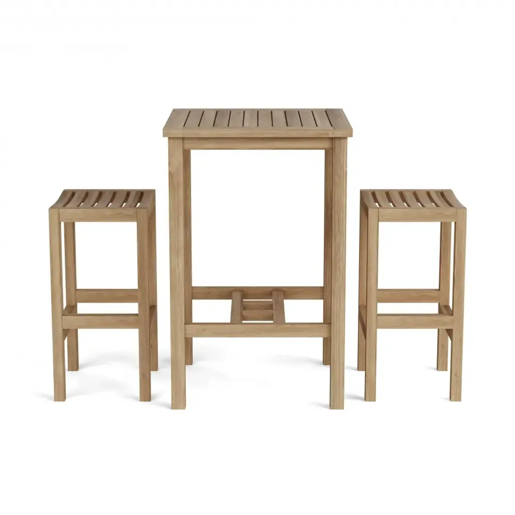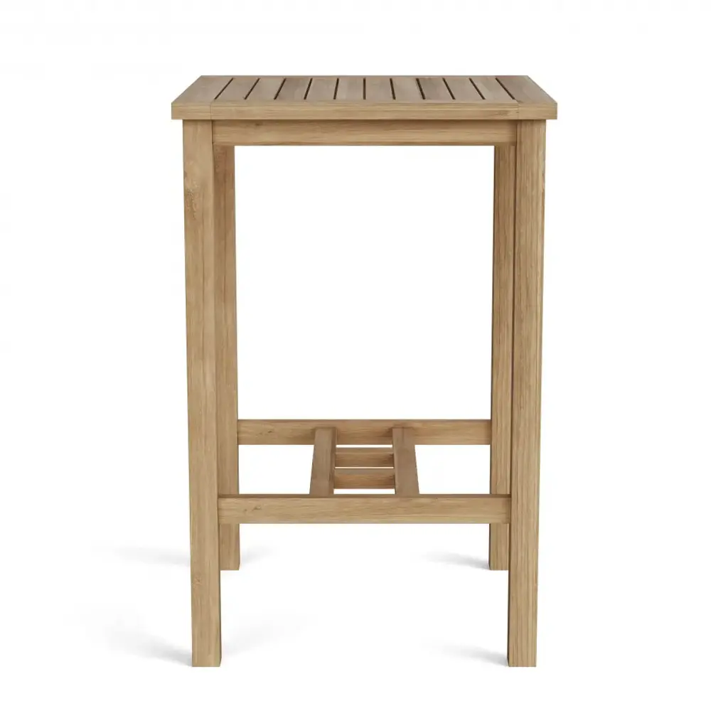 Add a touch of zest to your porch, deck, or patio with the Avalon 27” Square Bar Table. Blending naturally with any décor or accessories at your home, it can be mixed and matched with any of the numerous bar chairs collection from Anderson Teak. Over time, this bar table will weather to a beautiful silver gray patina. Sturdily constructed and comfortable, this table seats up to 2-4 people. Built from Premium A-Grade Teak sanded smooth unfinished, it’s the perfect outdoor bar table for the job.