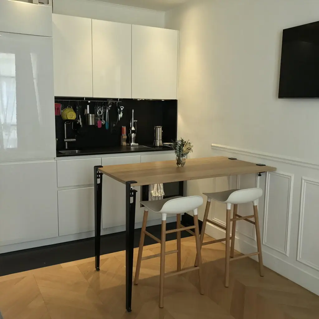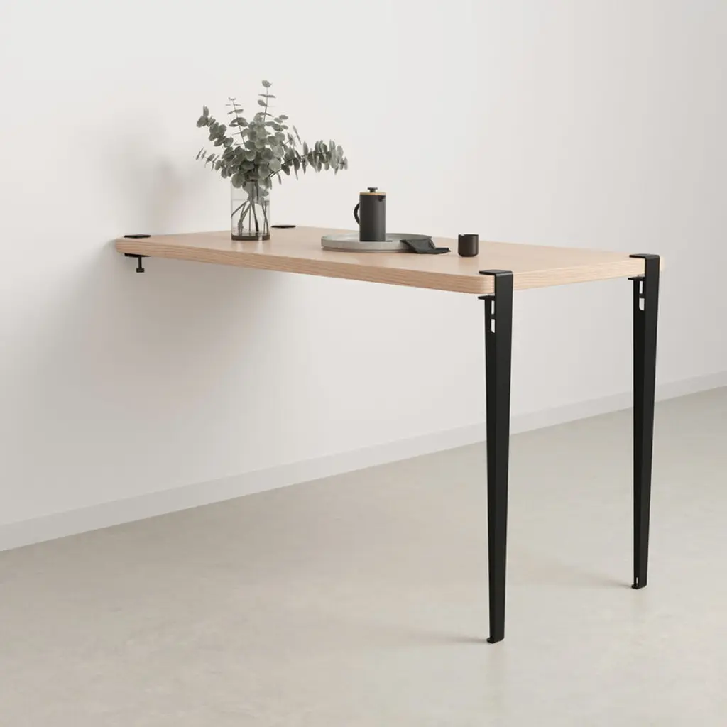 TIPTOE’s table legs allow you to create your own bar table by combining them with a table top of your choosing. By changing the table top to a different size or material, you can create an infinite number of possible compositions and looks using the same table legs. You can also combine the table legs with a tabletop and TIPTOE’s wall brackets to create a mounted desk! The table legs come in a variety of colors. The table legs are sold individually so that you can always purchase the amount of table legs you need for your creation. TIPTOE’s tips for choosing a table top: Recommended thickness: 0.79 in (20 mm) to 43 mm Max size for 2 legs and 2 brackets: 150 x 75 cm