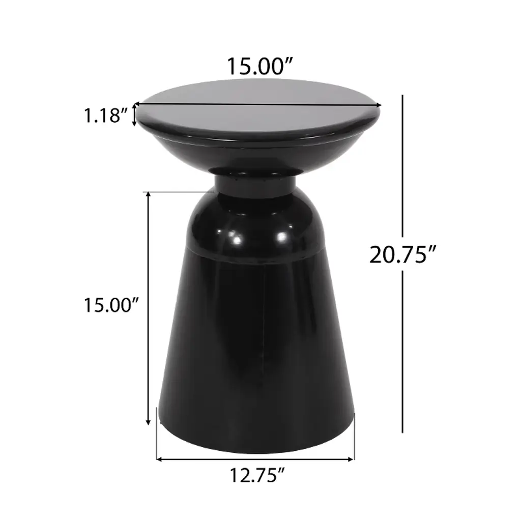 Cavinas Round Outdoor Coffee Table, Modern Outdoor Bar Table, Metal Patio Side Table For Terrace, Balcony, Black