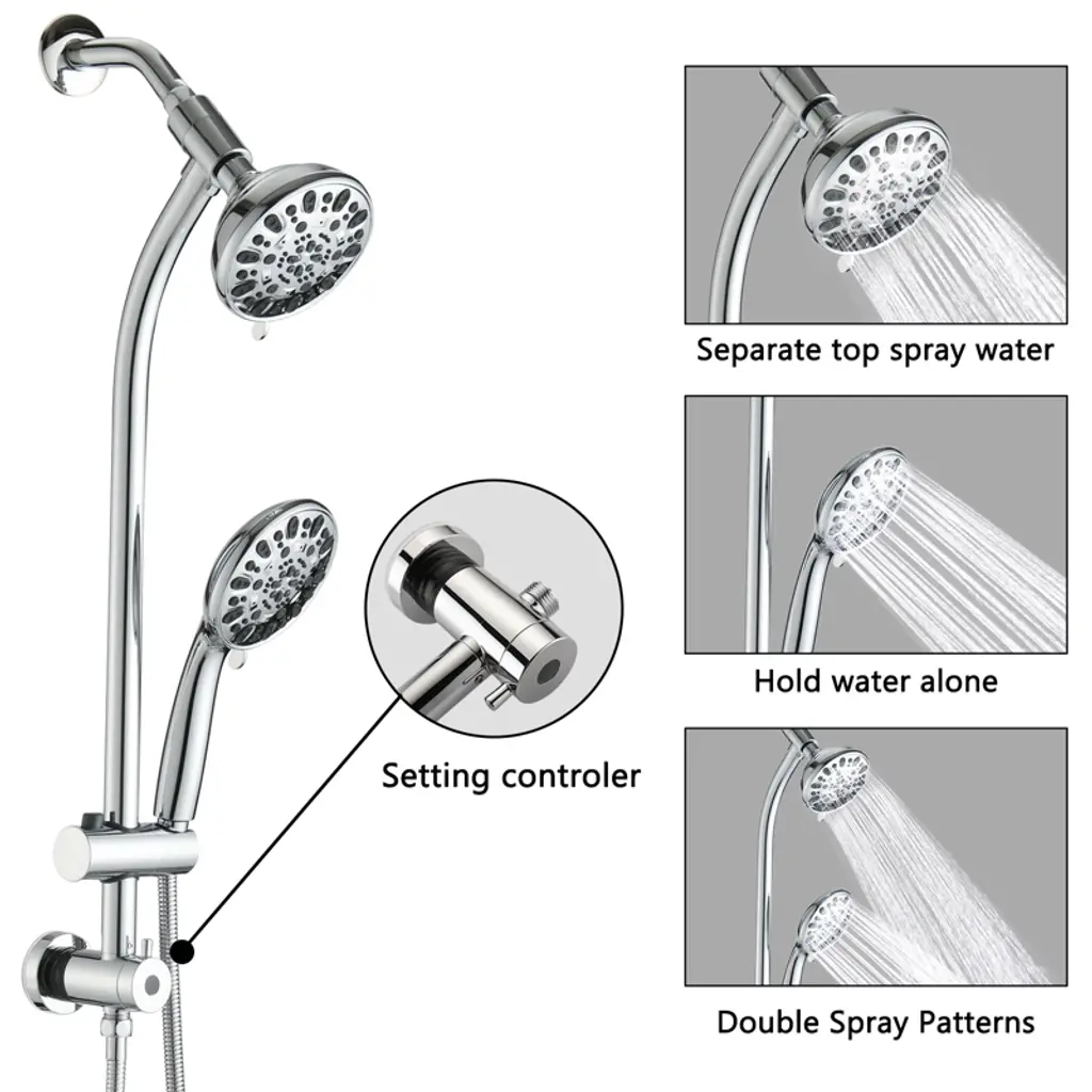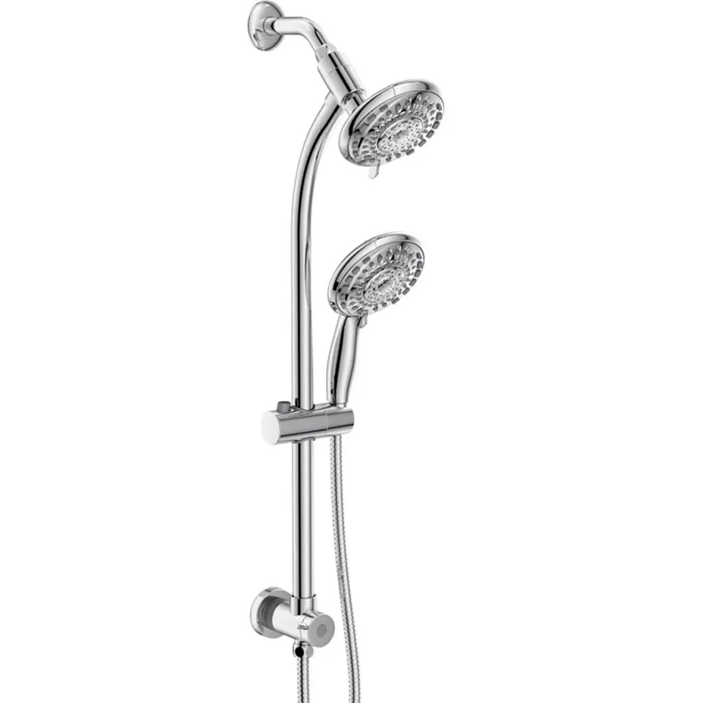 Upgrade your shower experience with this 26" Drill-Free Stainless Steel Slide Bar Combo, featuring a dual shower system with a 5" ABS rainfall showerhead and handheld spray. The adjustable slide bar accommodates all heights, while the 7-mode high-pressure nozzle (including rainfall, massage, fog, and water-saving pause) delivers a luxury spa-like experience. Corrosion-resistant stainless steel ensures durability, and the no-tools installation seamlessly replaces your existing shower setup.