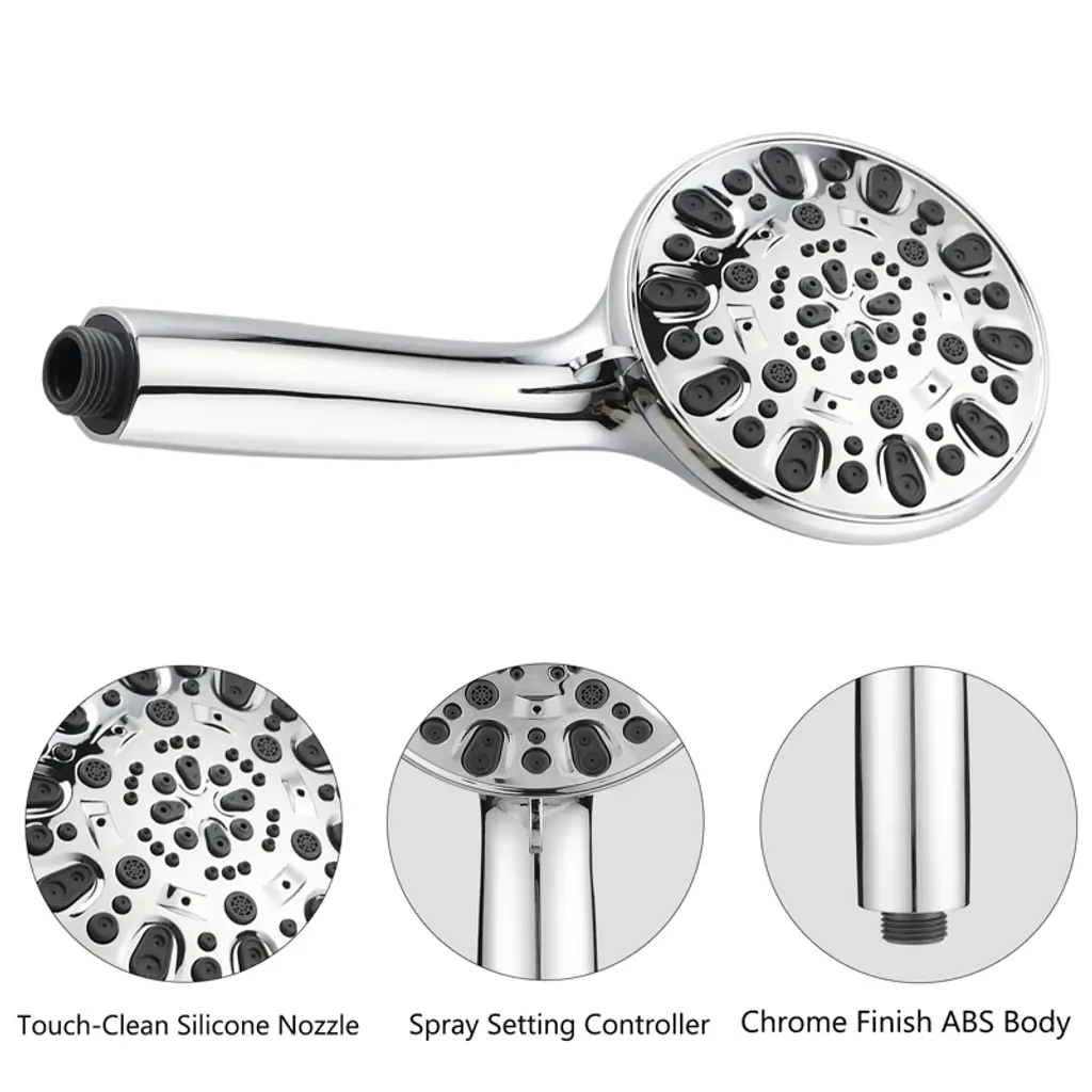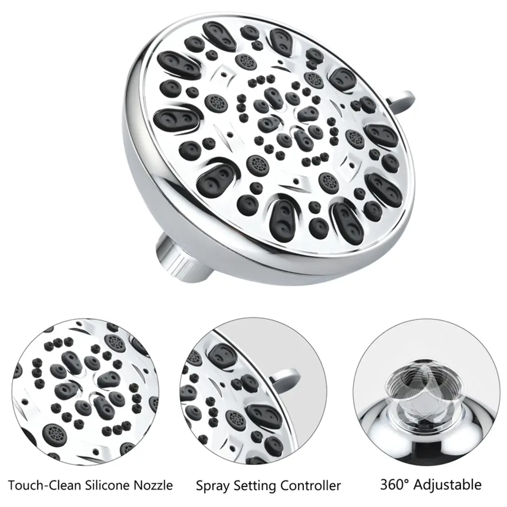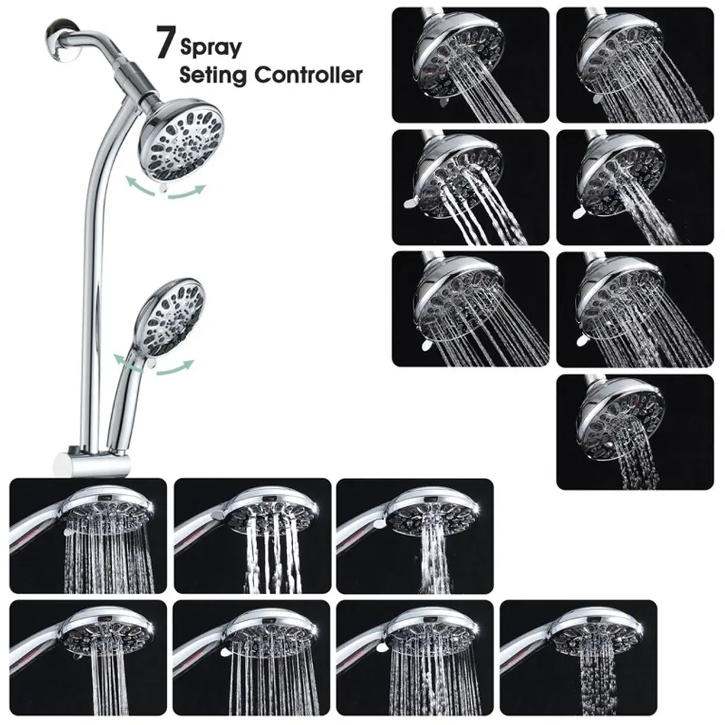 Chery Life Drill-free Stainless Steel Slide Bar Combo Rain Showerhead - 7 Adjustable Spray Modes, Easy Installation, Chrome