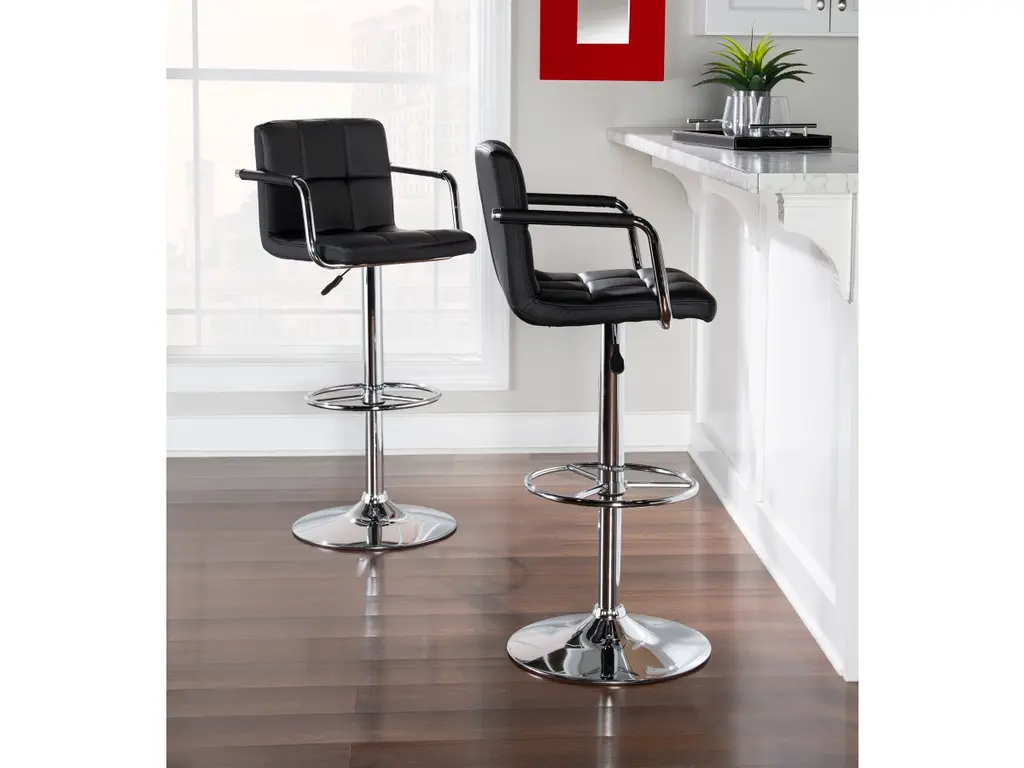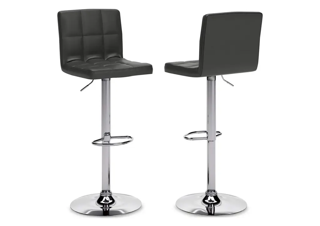 A stylish, faux leather quilted seat lends itself to the contemporary styling of this Chrome Black and Chrome Bar Stool. Finished with a round sturdy footrest and a gas-lift mechanism for convenient height adjusting, this piece combines function, comfort and style. 300 pound weight capacity. BIFMA 5.1 and EN1335 standard testing passed and approved. Some assembly required.