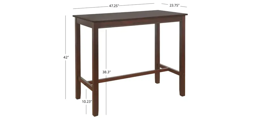 Add simple elegance to your bar with the Claridge Bar Height Pub Table. Perfect for providing a gathering, dining or desk space to your den or living areas. Top and solid wood base finished in black. Be sure to match with stools that have a seat height of 30 to 34" to provide enough leg room. Flexible and durable enough to be used in the dining room, living room or as extra kitchen counter space. Pair with the Claridge Black, White or Grey Bar Stool for the perfect set.