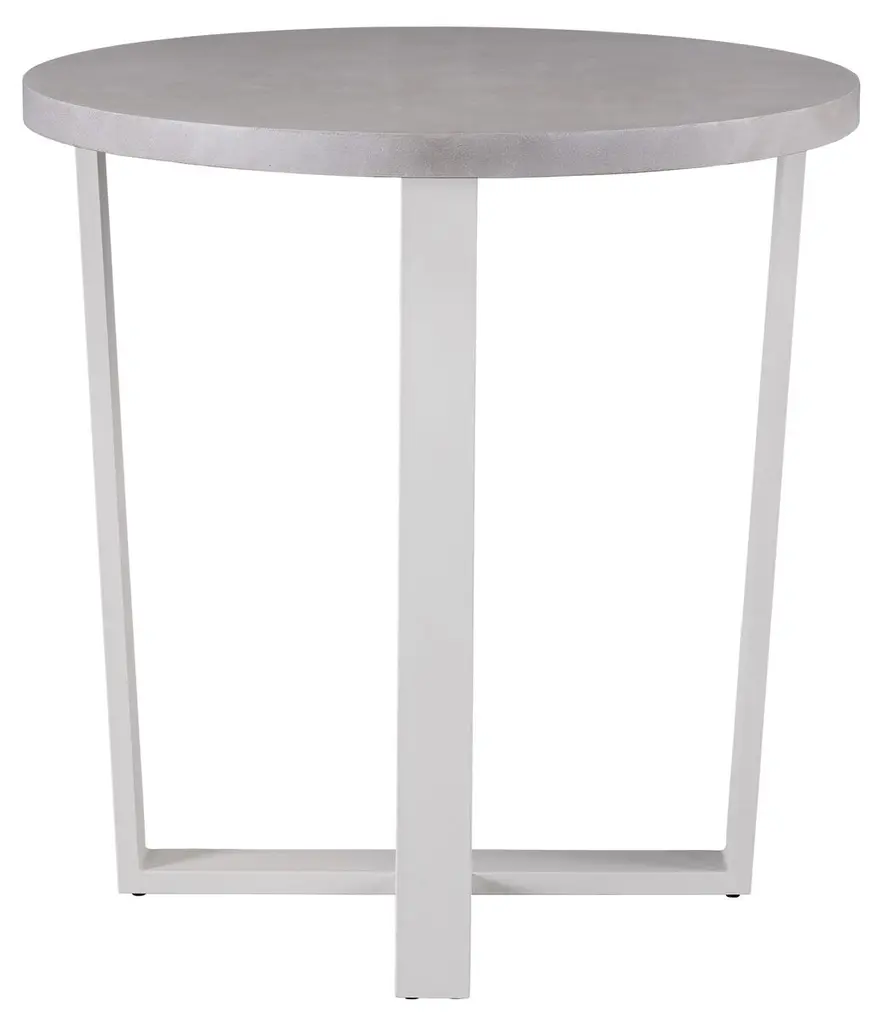 Consisting of a round cast-concrete top and an angular metal base, this bar table will bring contemporary finesse to your patio or deck.