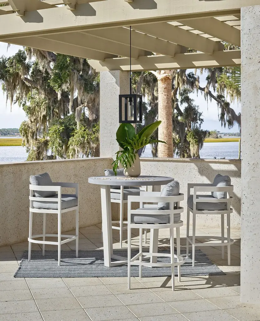 Coastal Living Keegan Outdoor Concrete Bar Table, White/gray