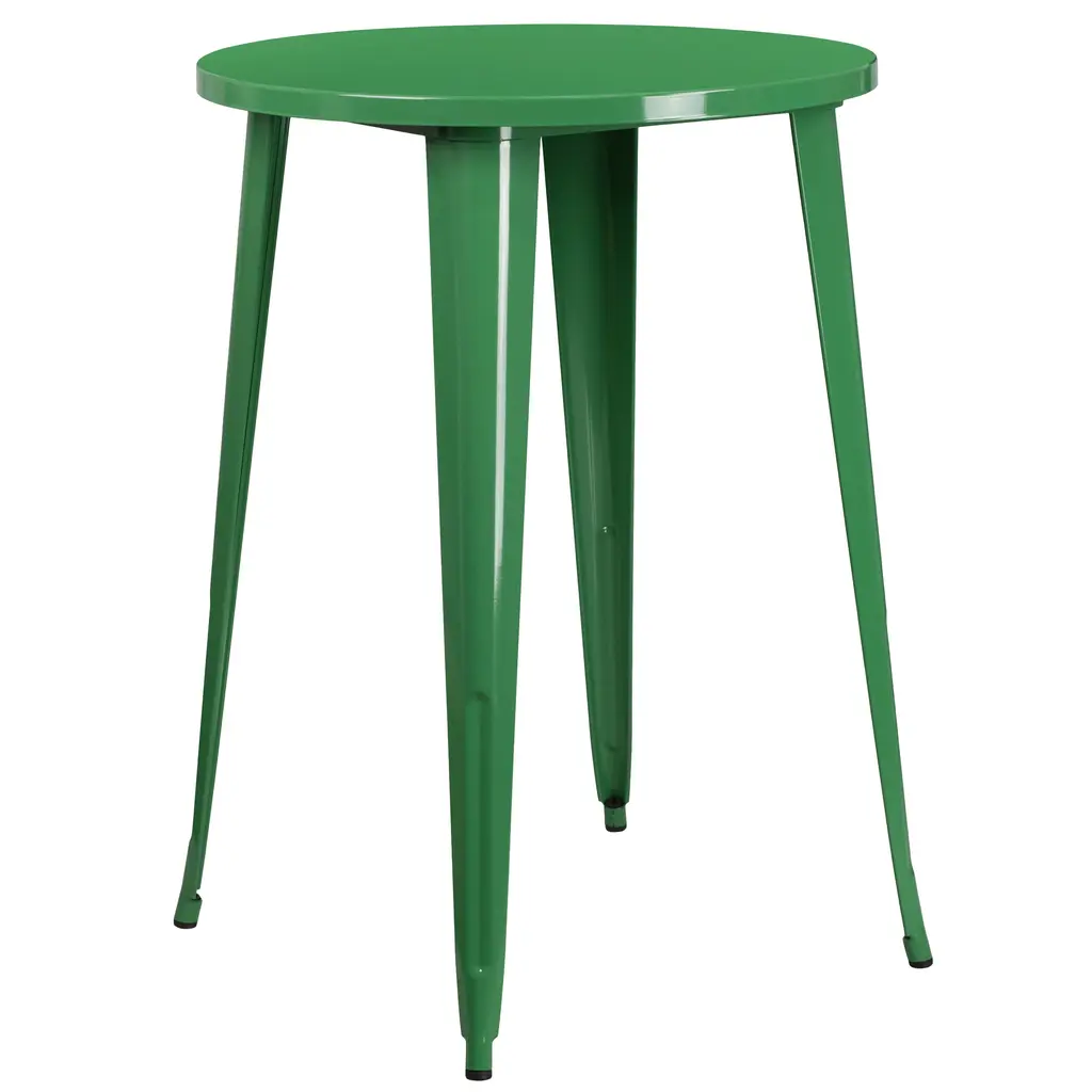 Commercial Grade 30" Round Metal Indoor-Outdoor Bar Table Set With 4 Square Seat Backless Stools