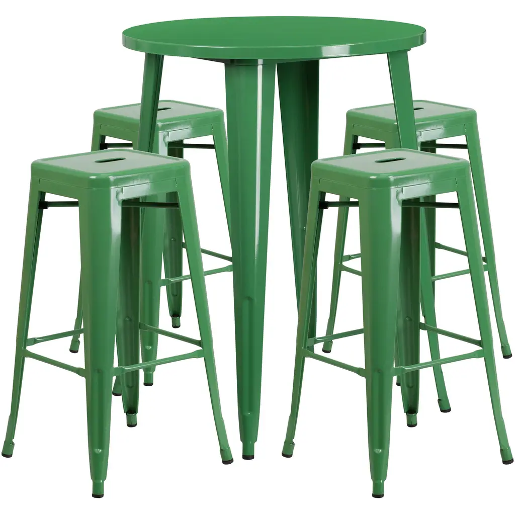 Commercial Grade 30" Round Metal Indoor-Outdoor Bar Table Set With 4 Square Seat Backless Stools
