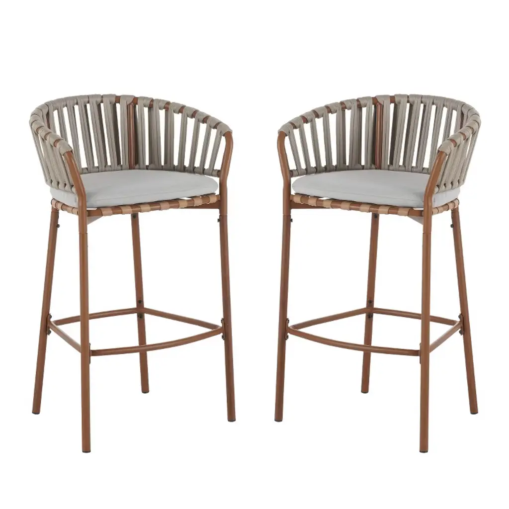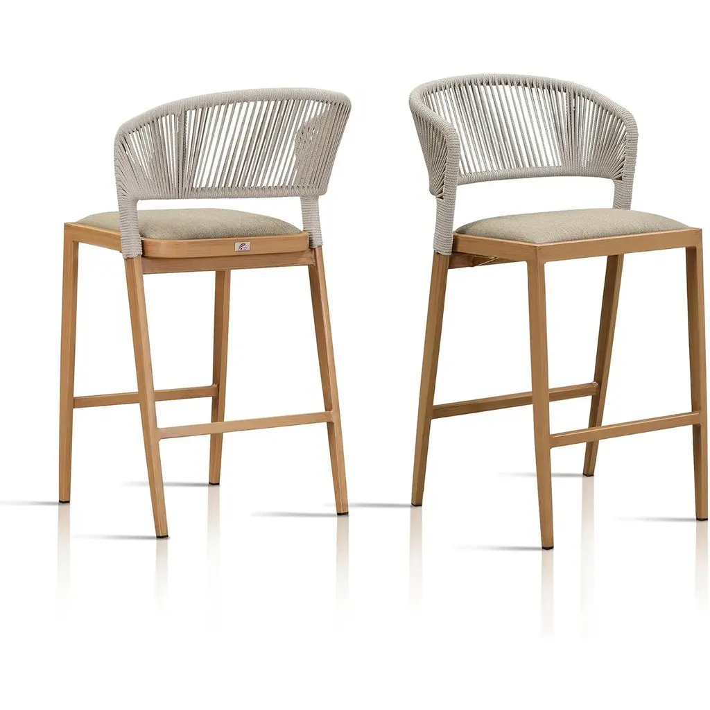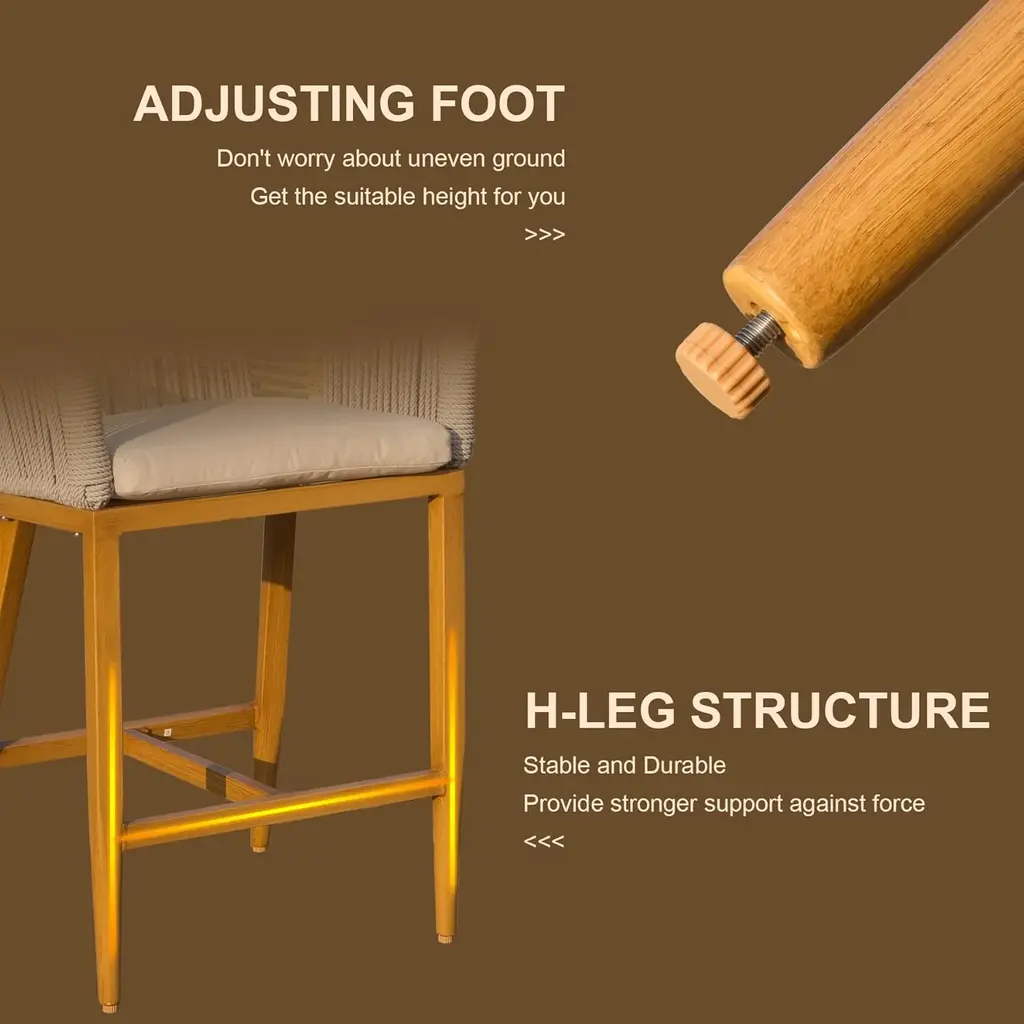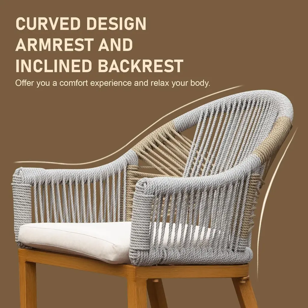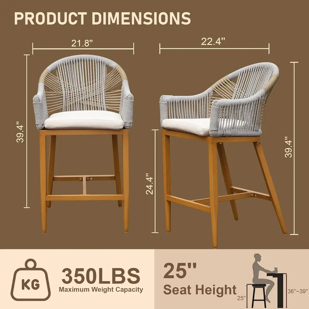 Elevate your outdoor space with this stylish bar stool, featuring a sleek aluminum frame and a polished finish that complements patios, balconies, or poolside settings. The backrest is made from durable, all-weather textilene rope, offering waterproof, UV-resistant, and fade-resistant properties. Built with a strong aluminum frame and H-shaped structure, the stool provides excellent stability, lightweight durability, and resistance to corrosion. For added comfort, the ergonomic design, memory foam cushion, and adjustable footrest ensure a relaxing seating experience.