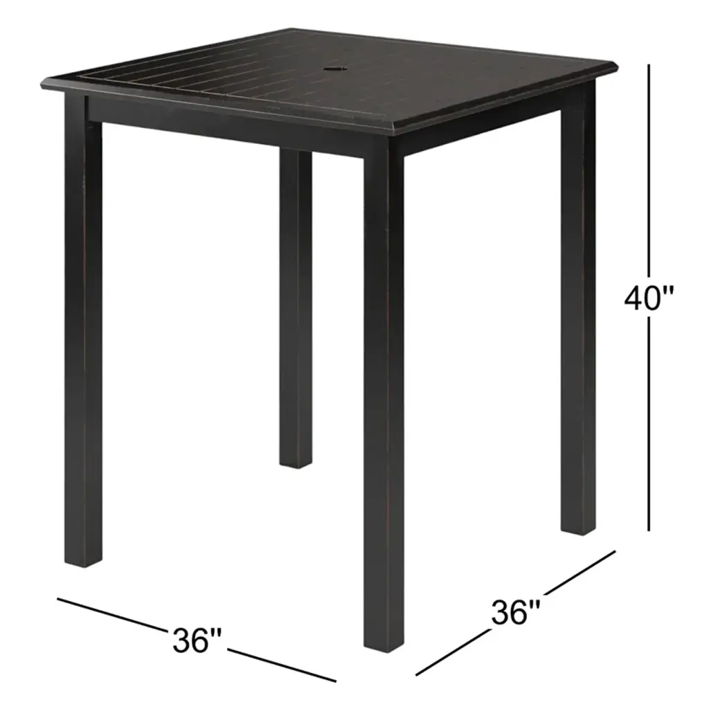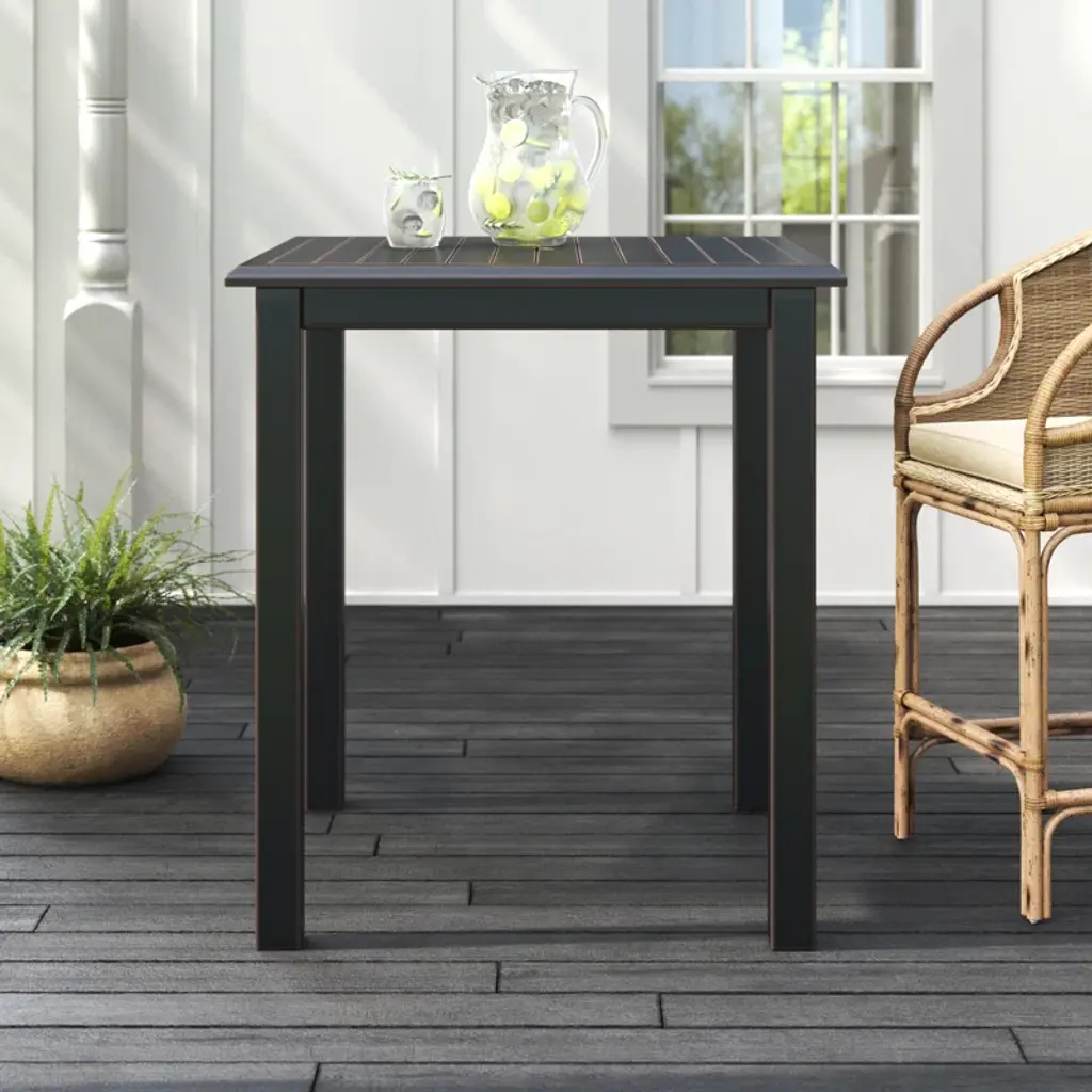 Elevate your entertaining space with this sleek metal bar table. Designed with a square tabletop, it's the perfect spot for enjoying cocktails, appetizers, or casual conversations with friends. The table's minimalist frame adds a touch of modern elegance to any room, while its exterior material ensures it can handle the occasional spill. So, gather around and raise a toast to good times and great company with this chic bar table. Just remember, it's for home use only. Cheers!