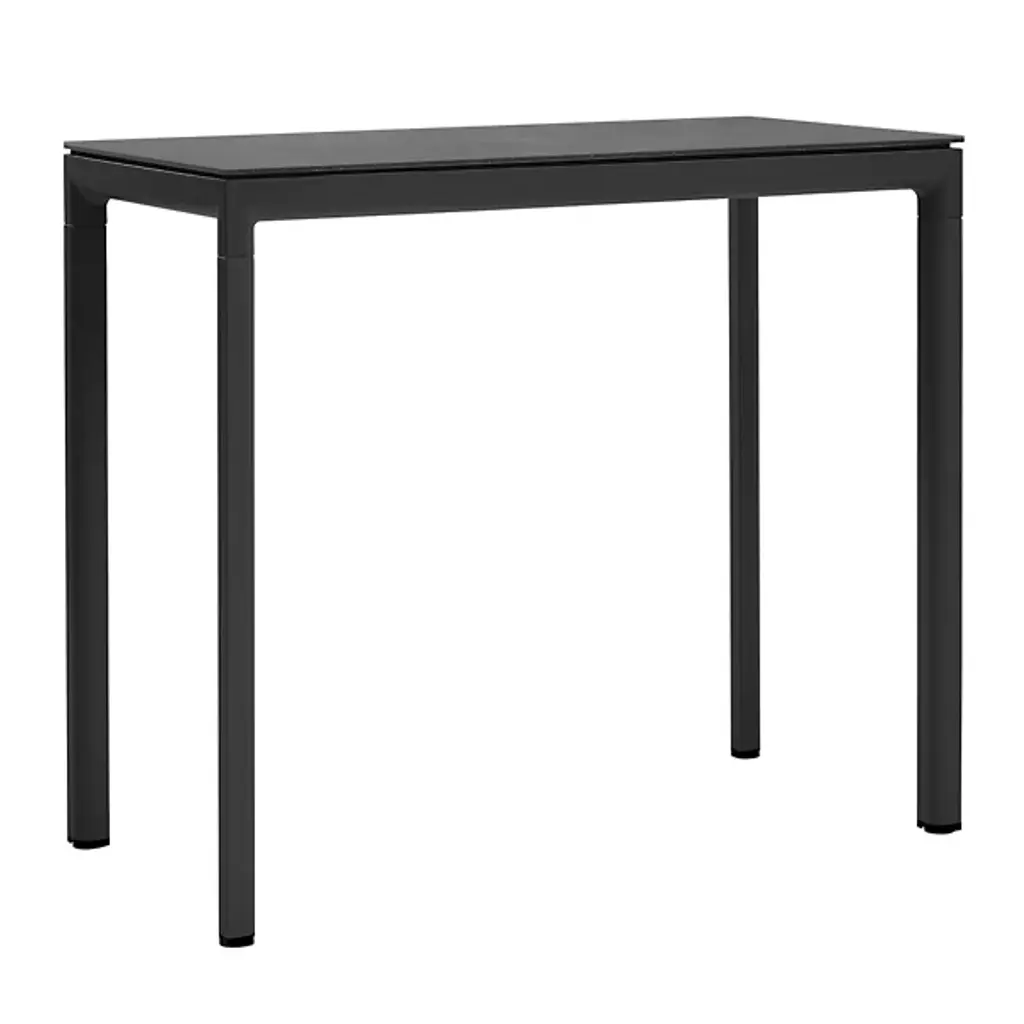 Meet the Drop Outdoor Bar Table from Cane-line, an expressive, open design where sleek aluminum frames meet chic tabletops for a contemporary outdoor aesthetic. Designed with a unique blend of angular, contoured table tops contrasting with softer shapes, it redefines outdoor elegance, creating an outdoor kitchen concept. The custom-designed aluminum profiles offer durability and sophistication, inspired by the graceful form of a water droplet, as it blends sharp edges with gentle curves, embodying contemporary and Scandinavian simplicity.