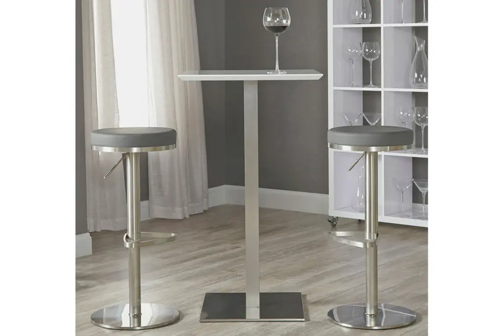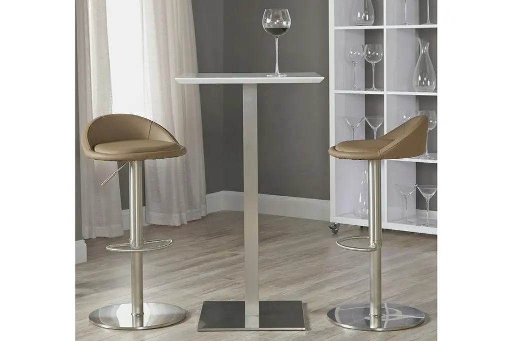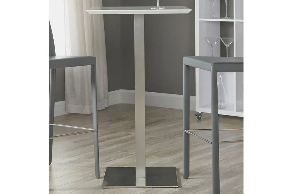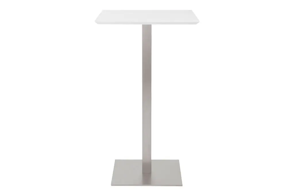 Create an industrial chic space with the Elodie-B Bar Table by Eurostyle. Constructed with a sturdy and sleek brushed stainless steel base and column, this bar table is sure to support a round of pints and snacks for you and your guests. Sharp, clean lines and angular surfaces on this high table are both functional and pleasing to the eye. The top is availabed in satin lacquered matte white surface that softens this hard look and is easy-to-clean, again marrying functionality and beauty. Either entertaining guests or using it for your own personal lunch space, this table is an easily integrated piece into your existing dcor.