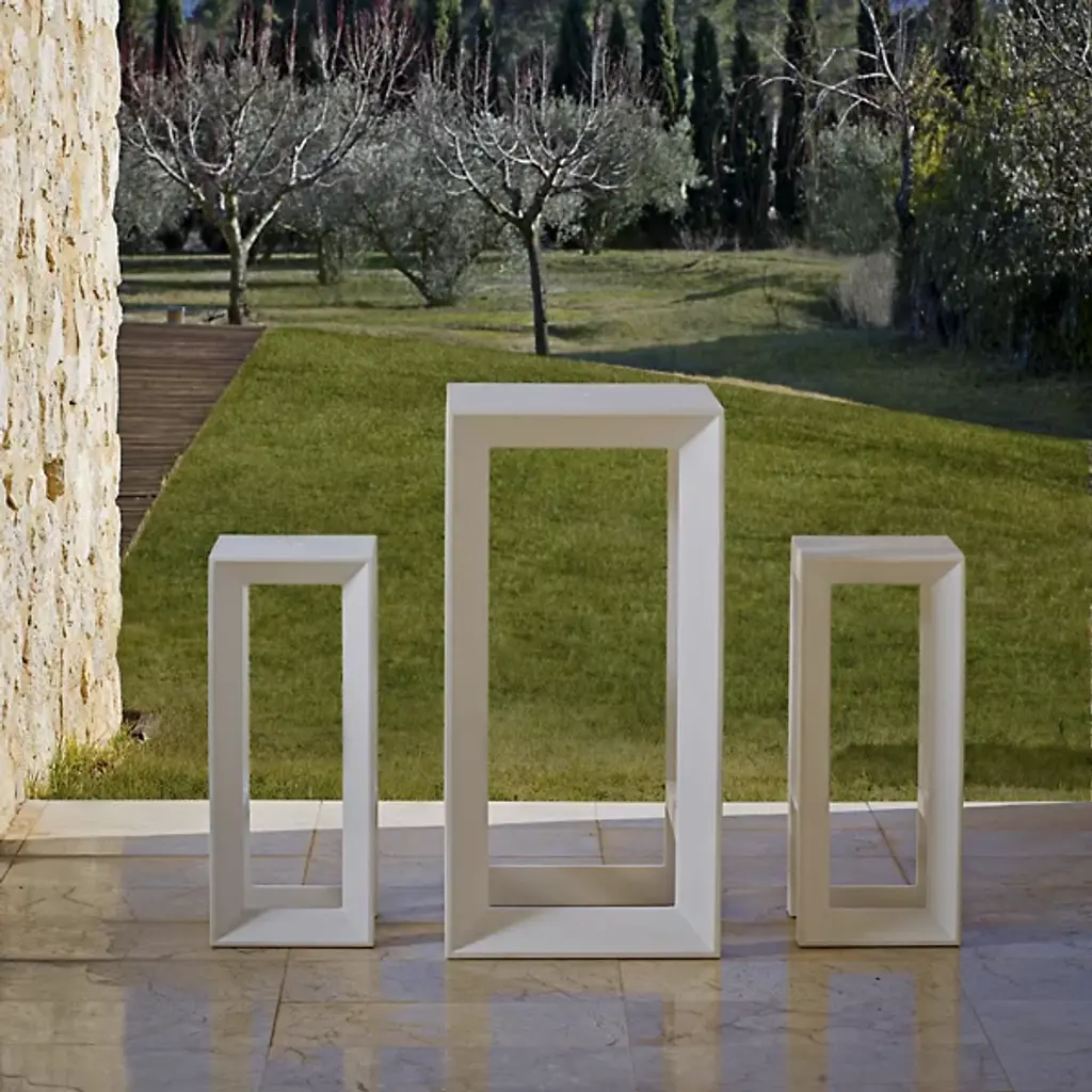 A contemporary bar table that's as pretty as a picture. From the side, the Vondom Frame Outdoor Bar Table has a beveled, rectangular profile illustrative of its name. The table is made entirely out of rotation molded polyethylene, which grants it strength as well as style. Suitable for both indoor and outdoor use
