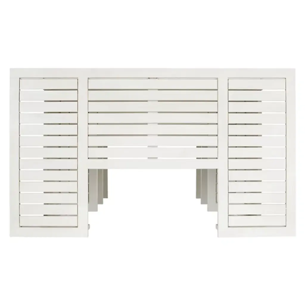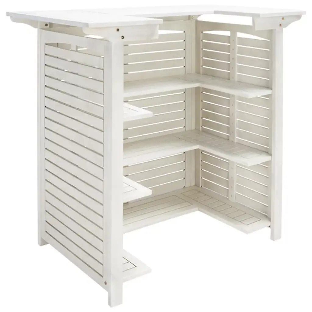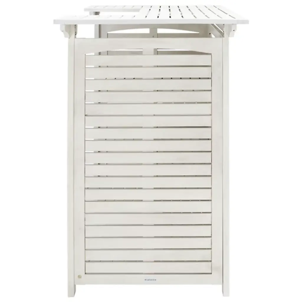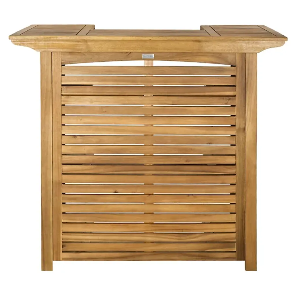 The Garlington Outdoor Bar Table from Alder & Ore maximizes outdoor entertaining with its smart drainage design. Each acacia wood slat is precisely spaced to prevent water accumulation while creating a stable surface for drinks and dishes. The galvanized steel frame ensures stability during lively gatherings. This rustic modern table becomes the natural gathering point for garden parties and casual outdoor meals. The eco-friendly acacia construction combines durability with environmental responsibility. Its natural finish ages gracefully outdoors, developing character while maintaining structural integrity through years of use.