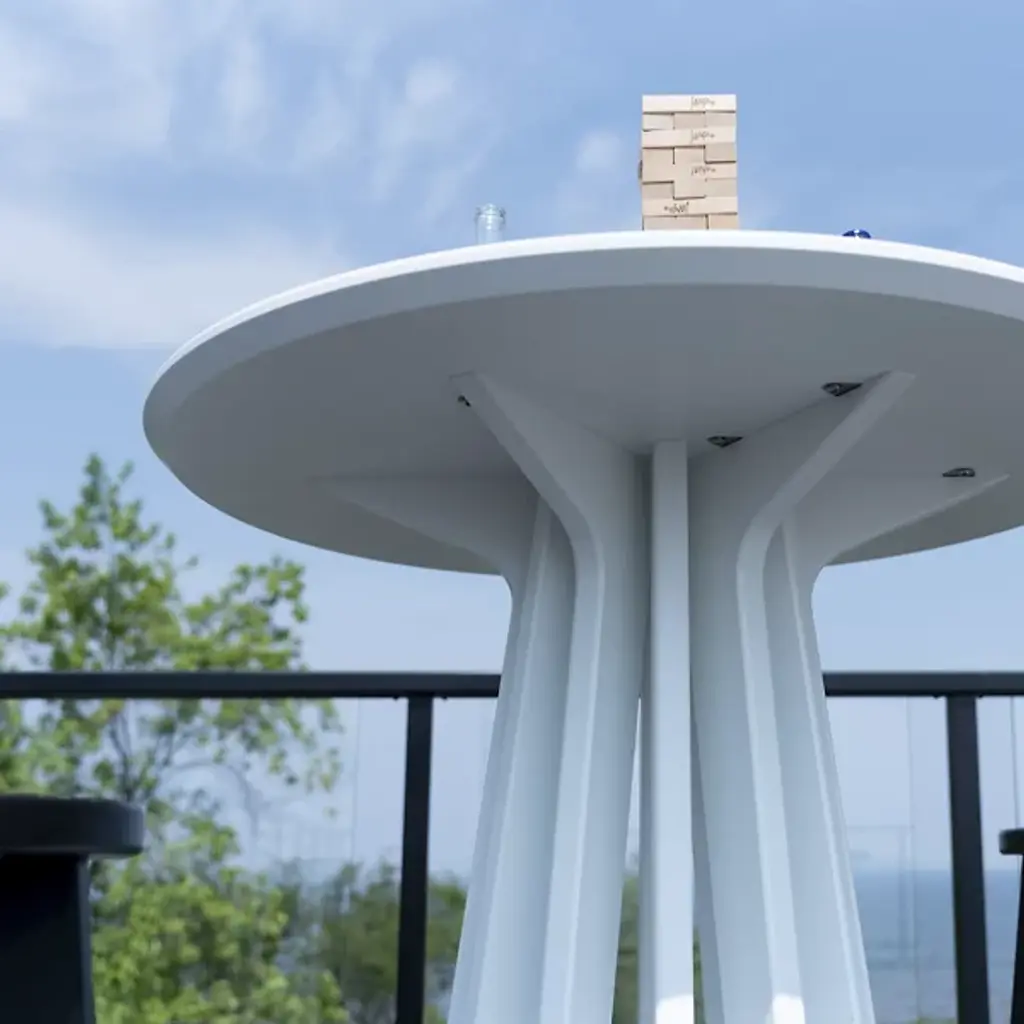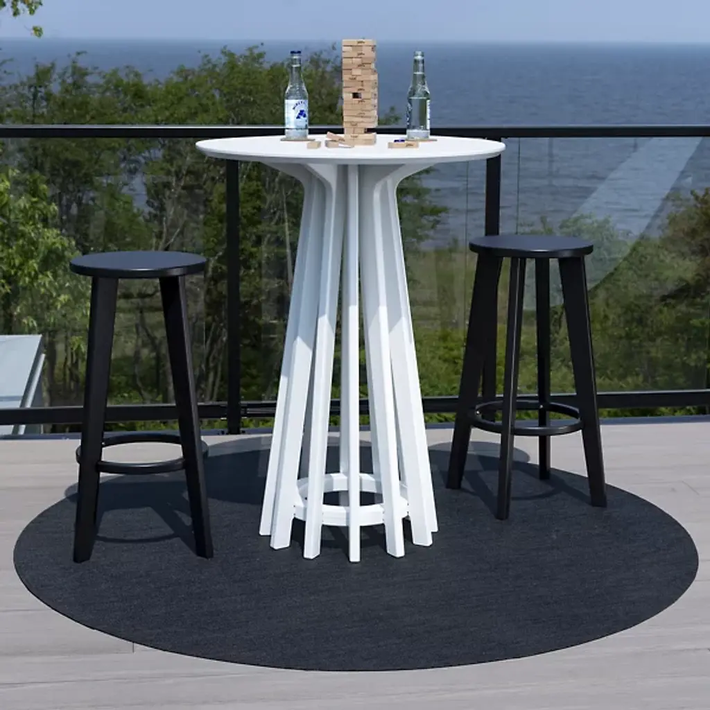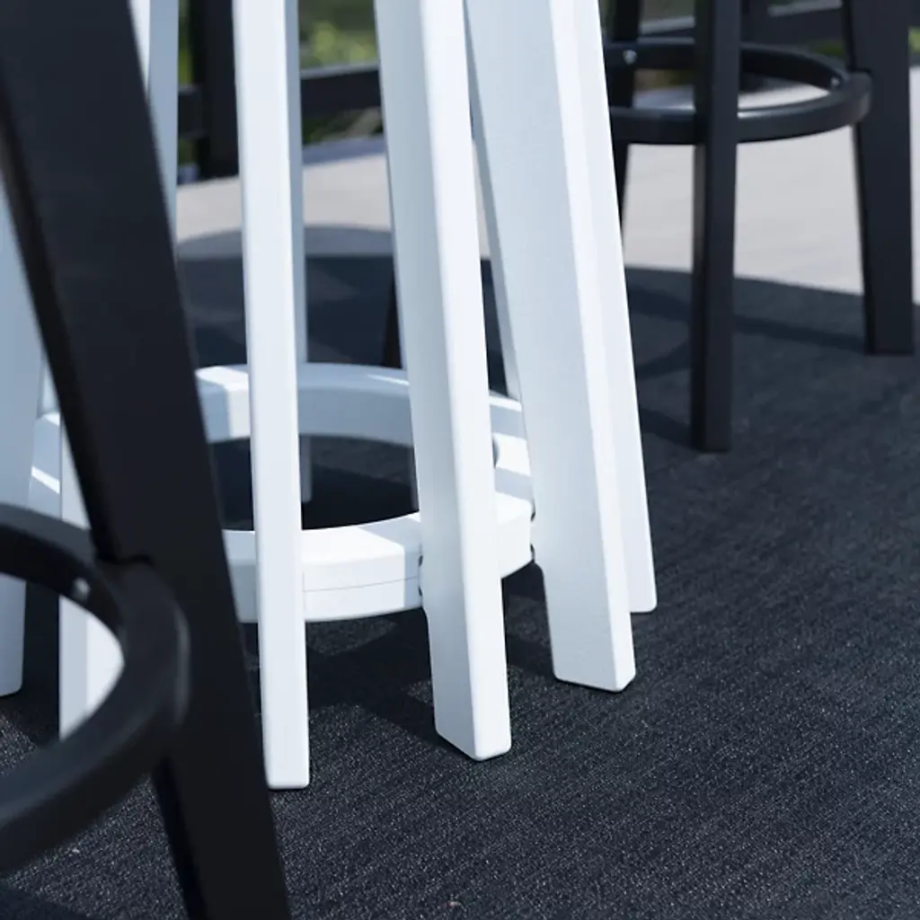 The Good Company Outdoor Bar Table by Loll Designs is more than just a functional piece; it's a striking centerpiece for your outdoor spaces. Its unique sculptural base captivates, drawing you into your outdoor oasis with its elegant design. This table adds style and versatility to your outdoor gatherings. Crafted from recycled, unpigmented milk jugs, it showcases deep, rich colors and an eco-friendly ethos with a solid contemporary charm and an elegant sculptural appeal.