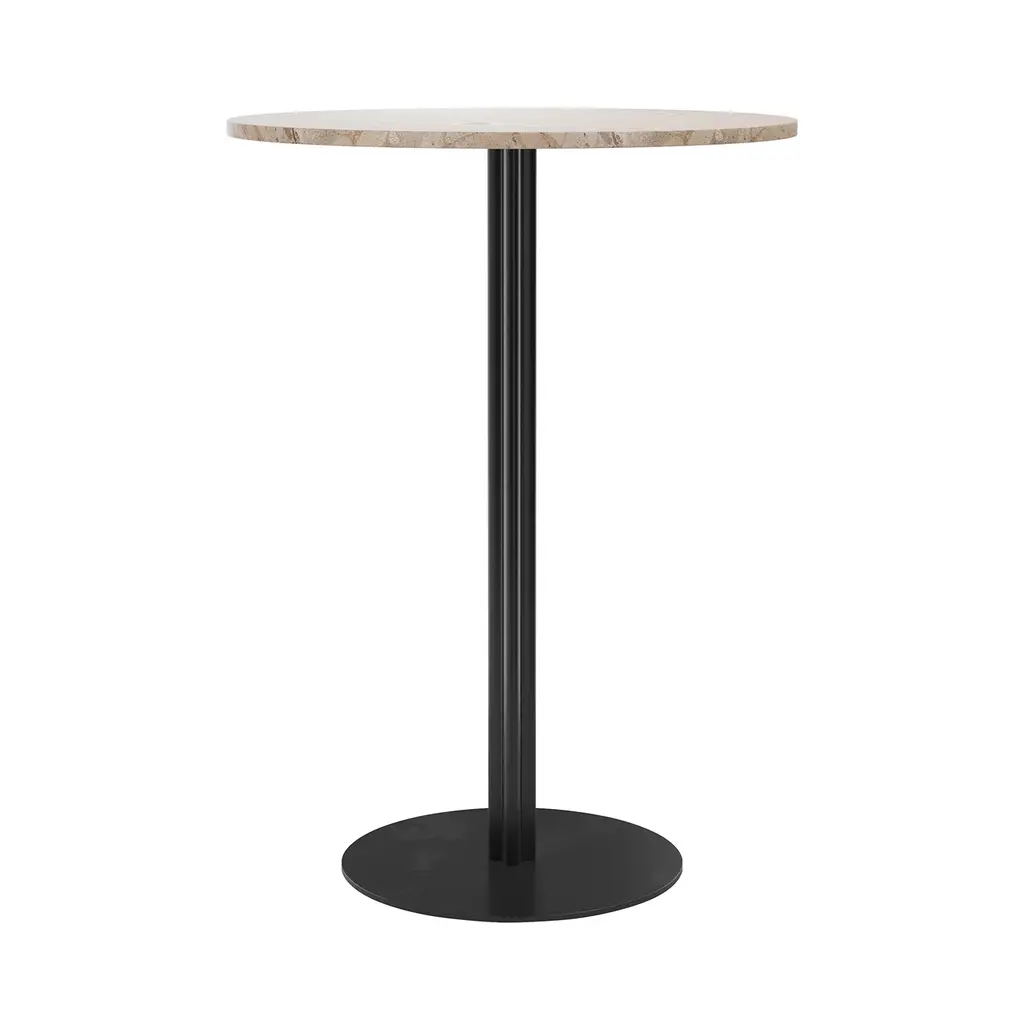 Audo Copenhagen's column table gets a convivial round tabletop in a choice of refined stone, tactile wood veneer or smooth linoleum in these bar and counter versions. Harbour’s clover-shaped column base lends a refined air to the kitchen or den, with a choice of a round disc footing or a 4-star configuration in powder-coated steel.