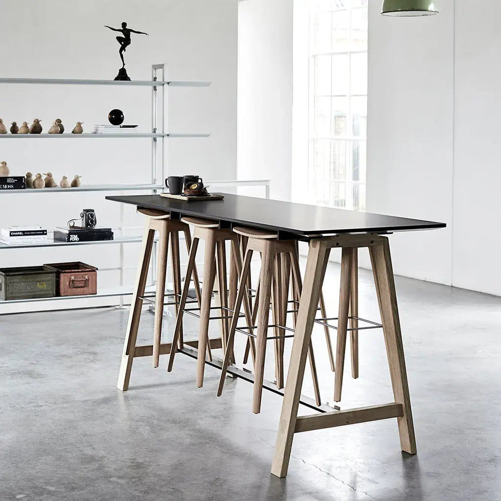 The HT1 high table is designed by byKATO. A stylish, simple table which suits any environment – whether it's a canteen, a common room or a reception area. The collection consists of two tables of different heights, each of which is available in three lengths, up to 480 cm. There is also a model with extra width. The tabletop is available in a wide variety of colours. This maximises the options for creating exactly the table that fits into your context. The footrest has a stainless steel casing which completes the table in a classic and stylish way. The HT1 high table with extra width is available in two heights and two widths, as well as in five different lengths. The standard width is 75 cm, while the extra wide tables have widths of 100 cm and 120 cm respectively. These tables are ideal for meeting tables, canteen tables etc.