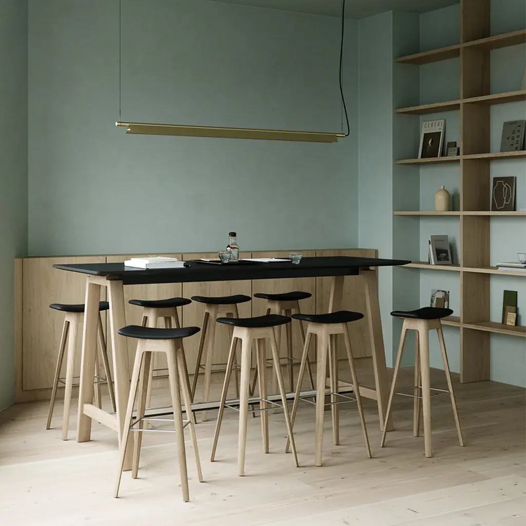 The HT1 high table is designed by byKATO. A stylish, simple table which suits any environment – whether it's a canteen, a common room or a reception area. The collection consists of two tables of different heights, each of which is available in three lengths, up to 480 cm. There is also a model with extra width. The tabletop is available in a wide variety of colours. This maximises the options for creating exactly the table that fits into your context. The footrest has a stainless steel casing which completes the table in a classic and stylish way. The HT1 high table with extra width is available in two heights and two widths, as well as in five different lengths. The standard width is 75 cm, while the extra wide tables have widths of 100 cm and 120 cm respectively. These tables are ideal for meeting tables, canteen tables etc.
