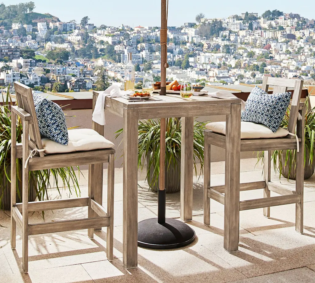 Clean lines, a compact profile, and an airy silhouette help our Indio Collection fit in anywhere. This versatile, bar-height table is crafted from sustainable eucalyptus to give your outdoor oasis a relaxed, sun-drenched look.