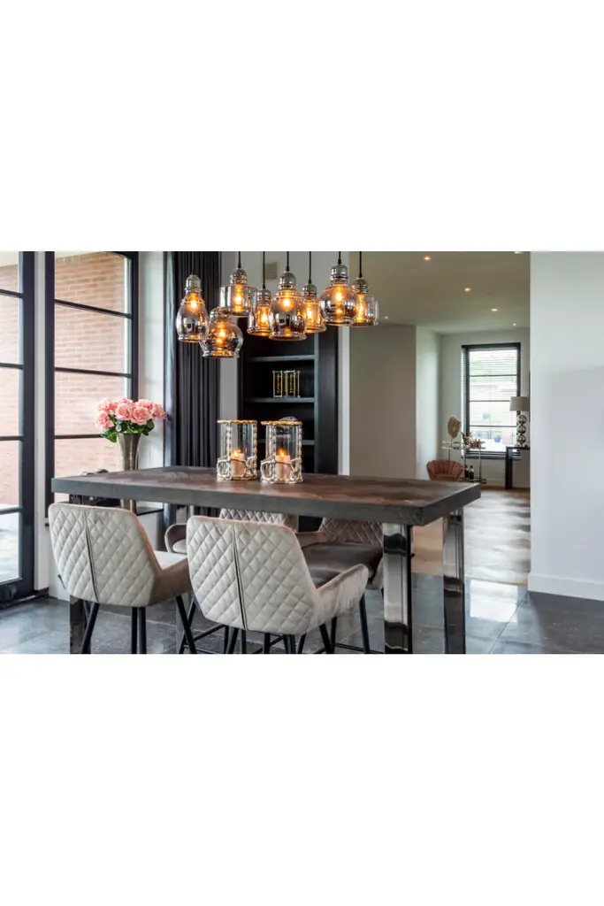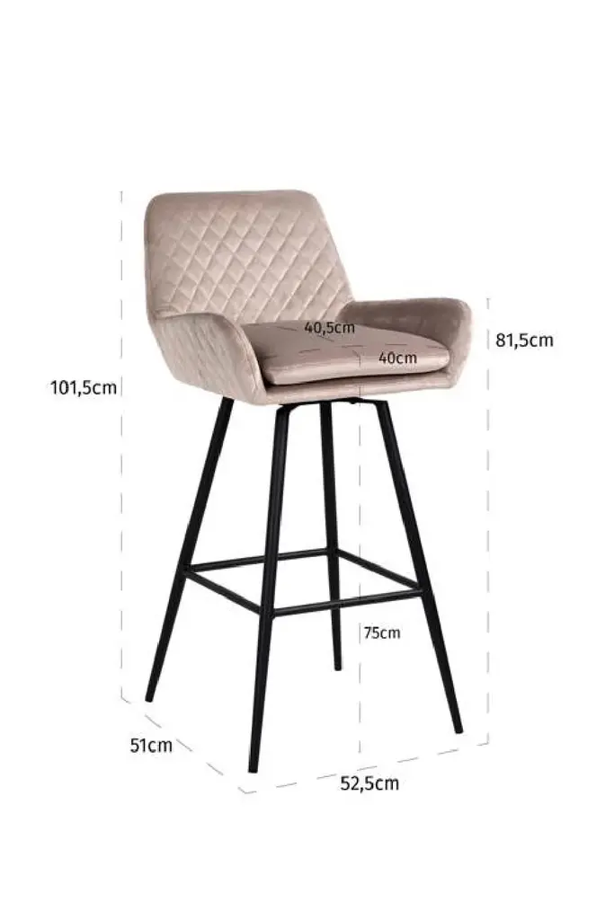 Bar chair Linsey is rotatable and made of velvet, polyester, and black steel legs. The checkered pattern on this chair gives both an industrial and classic look.