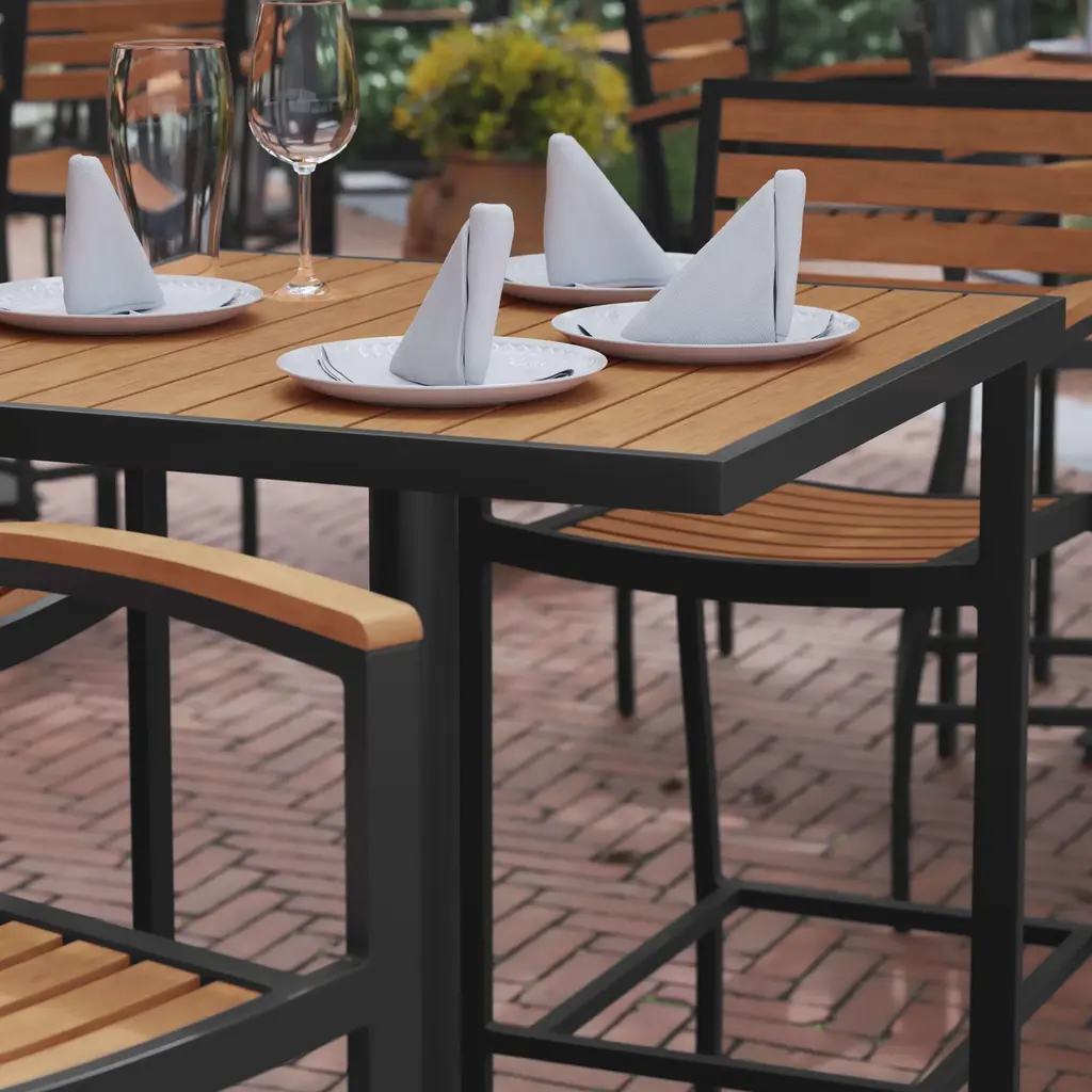 Lark Commercial Grade 32" Square Outdoor Bar Height Table With Poly Resin Slats