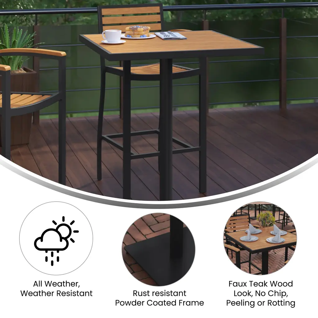 Lark Commercial Grade 32" Square Outdoor Bar Height Table With Poly Resin Slats