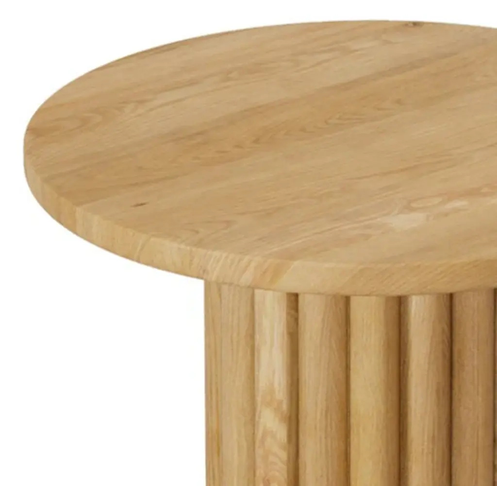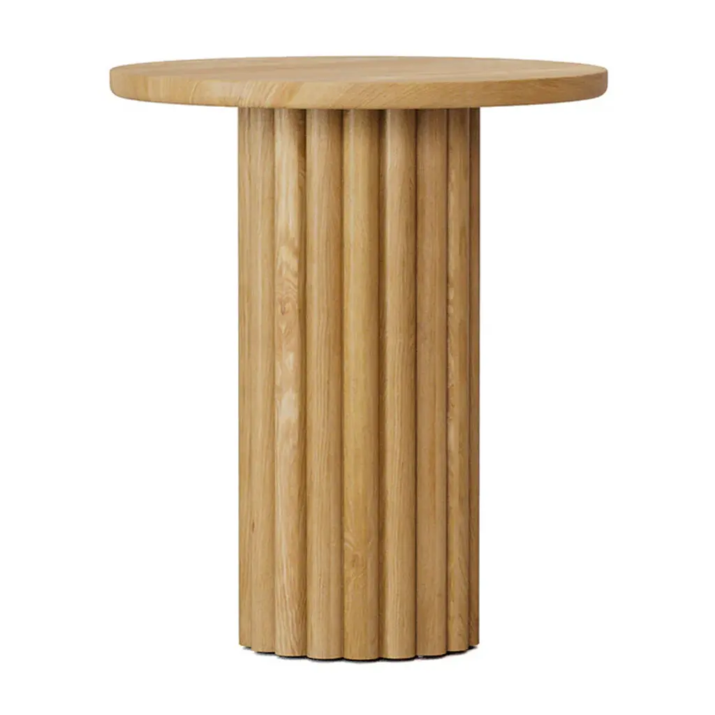 Our Lyla bar table distills the classic pedestal style table down to its striking essentials. The table's ribbed pedestal and soft edged top are both handcrafted from FSC Certified Oak Wood: