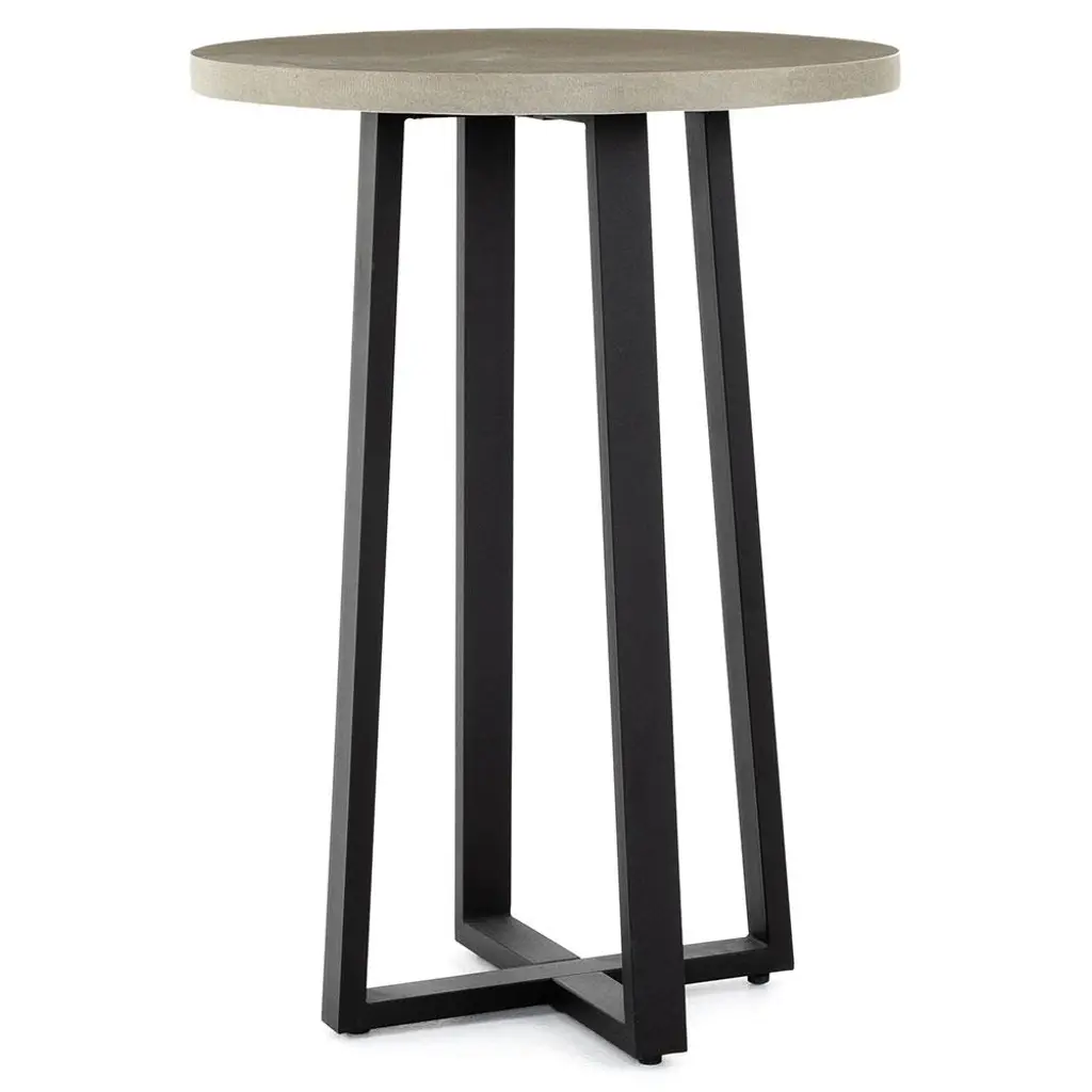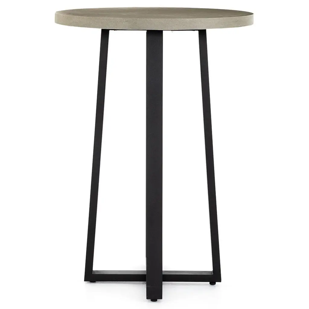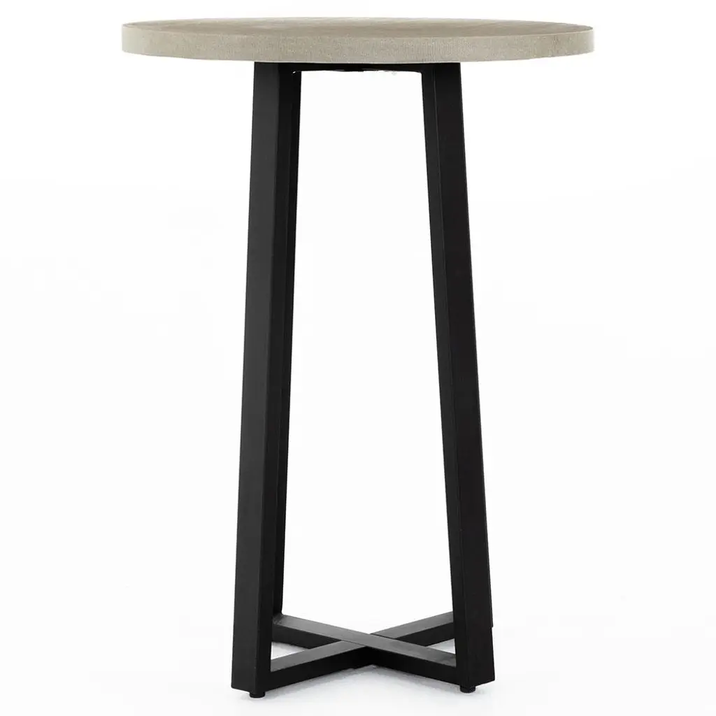 Maceo Modern Classic Grey Stone Black Iron Round Outdoor Bar Table - 30"w