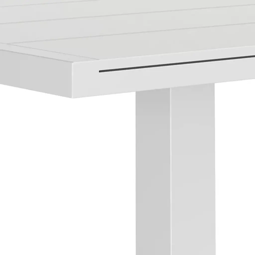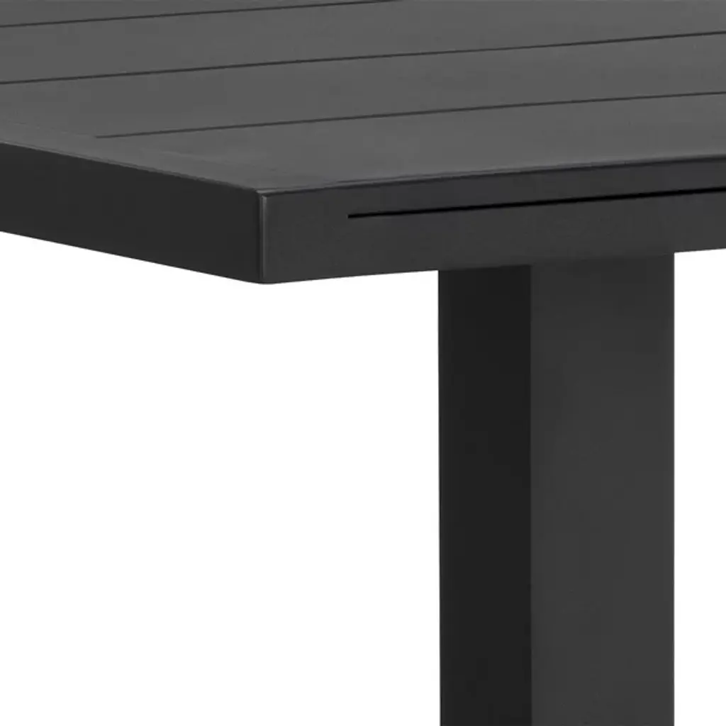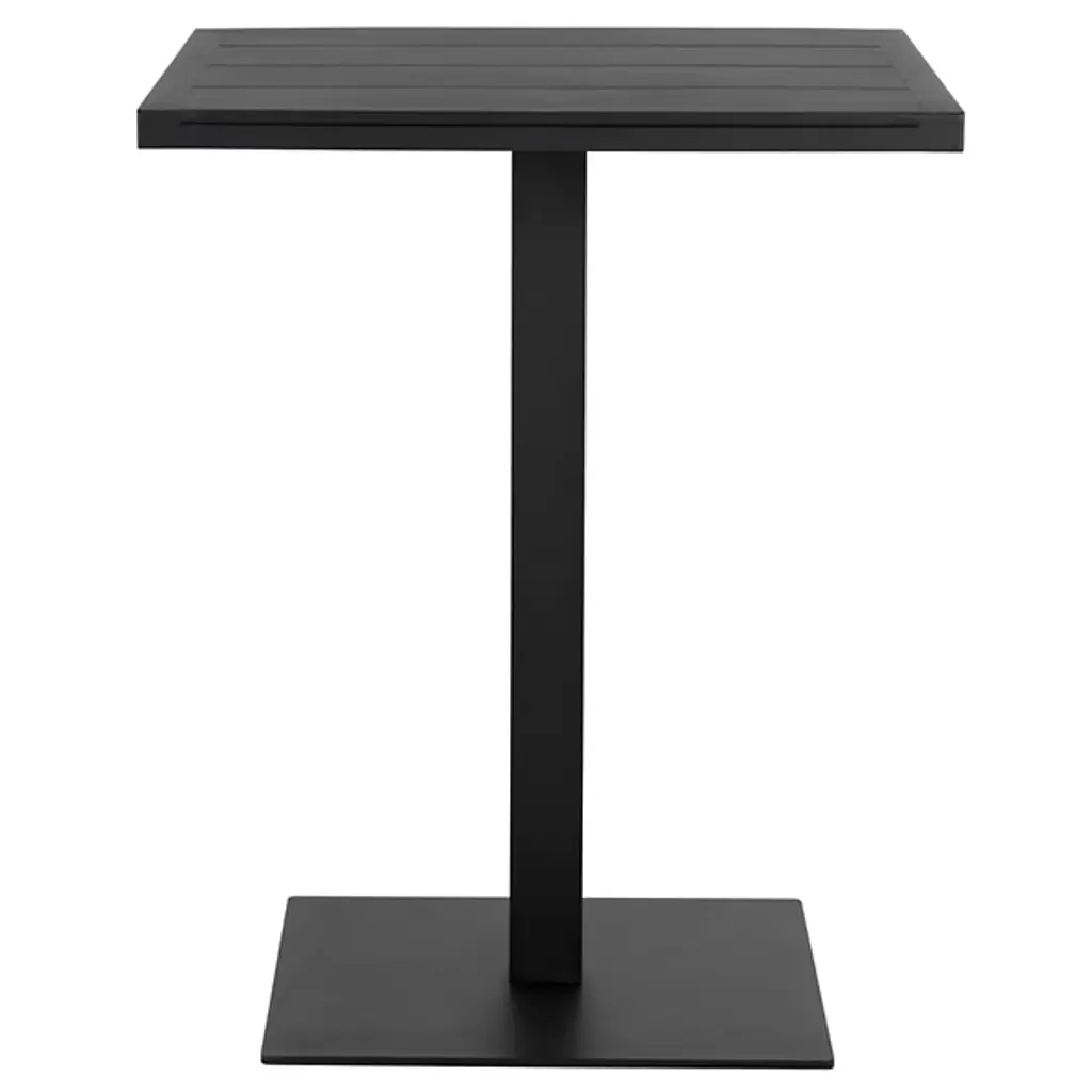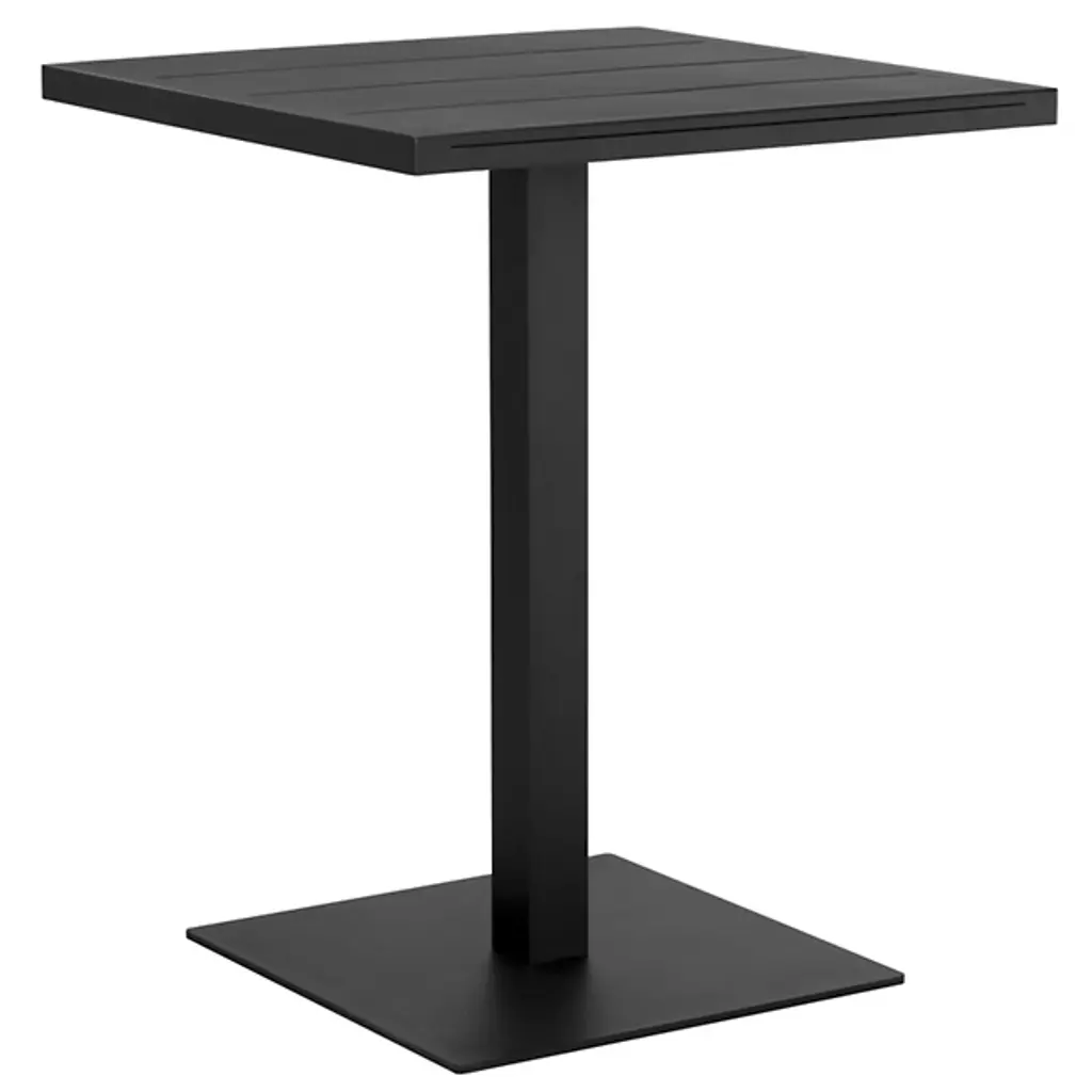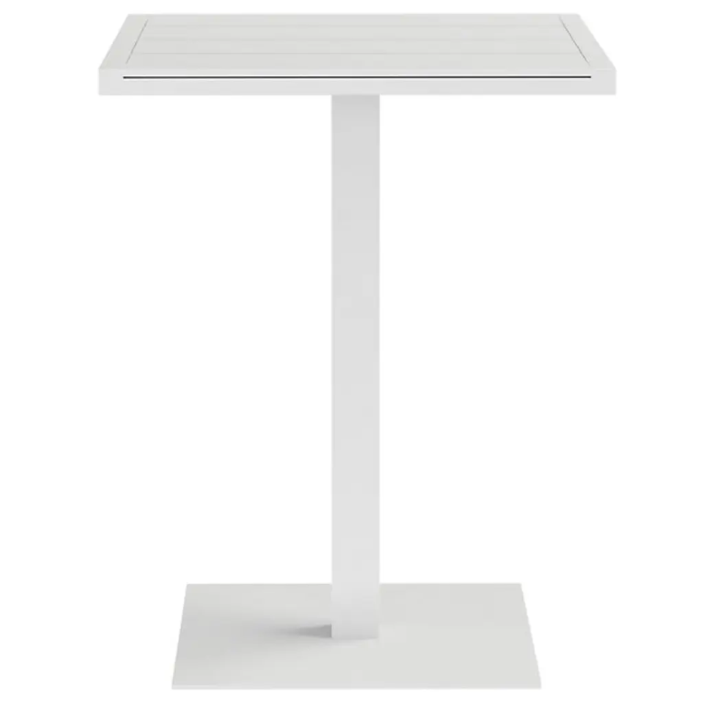 The Merano Bar Table from Sunpan brings contemporary simplicity to indoor and covered outdoor spaces. Made with 100% recyclable materials, this bar table pairs modern aesthetics with eco-conscious design. The clean-lined silhouette has a slatted tabletop supported by a sturdy powder-coated aluminum frame, ensuring durability and weather resistance. Designed with smooth surfaces and total functionality in mind, the square base and single-column design provide ample legroom, making it ideal for both seated and standing gatherings.