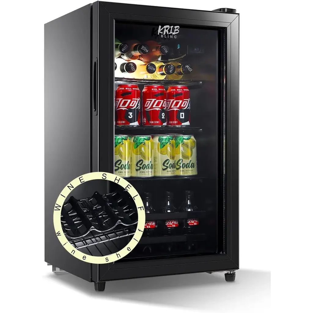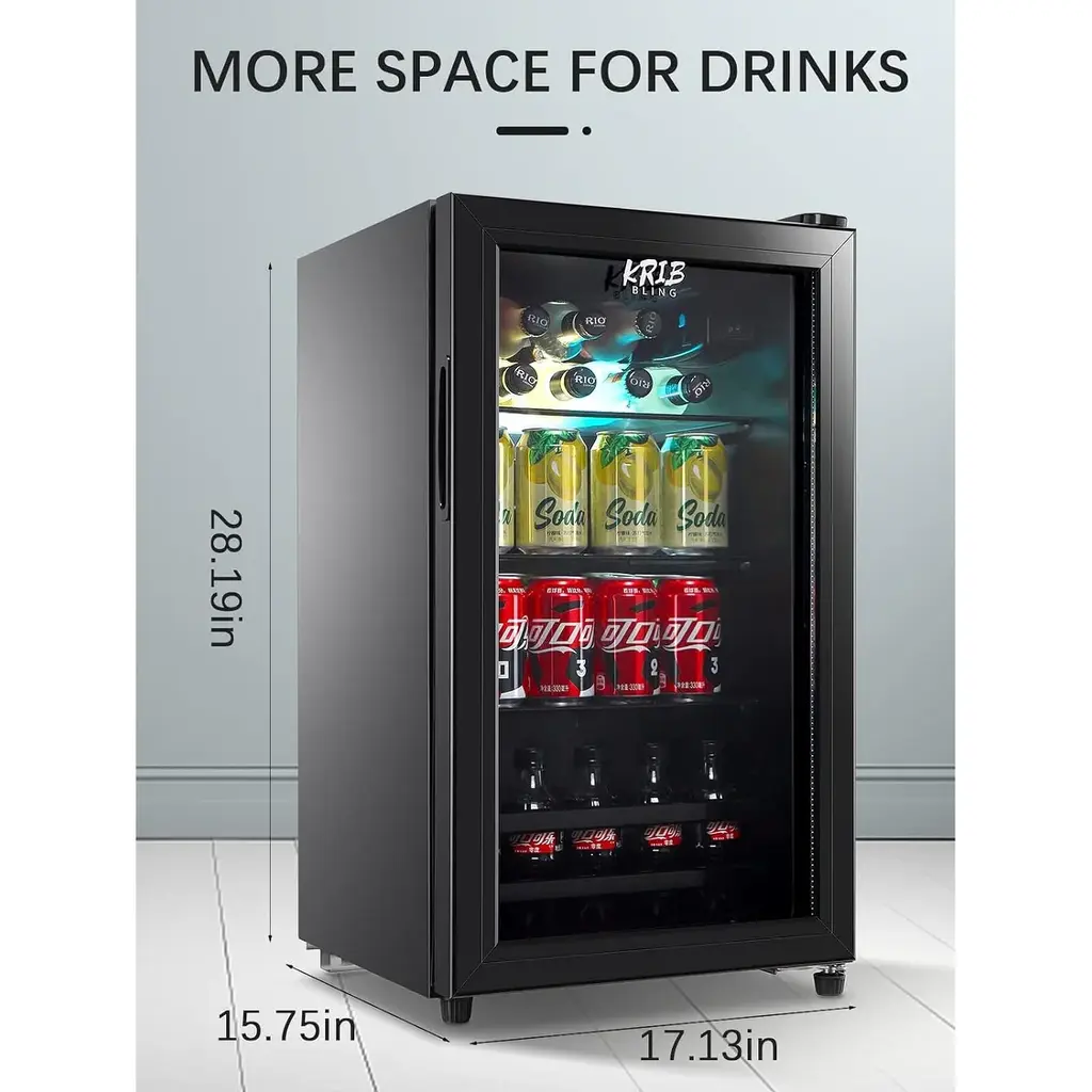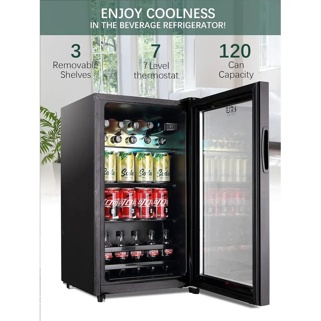 Mini Beverage Refrigerator And Cooler For 120 Cans With Wire Adjustable Shelving For Water, Wine For Dorm, Office, Bar - Black
