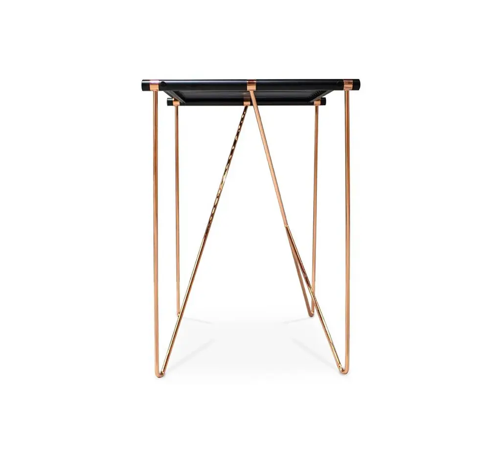 Outdoor Bar Table With Black Top, Stainless Steel Frame, And Gold-Plated Legs