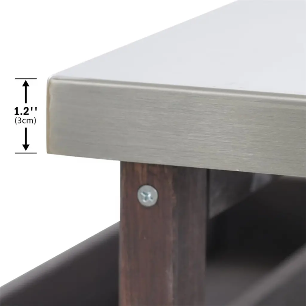 Outdoor Grill Table With Stainless Steel Top, Rolling Bar Cart & Storage Cabinet W/internal Storage Rack, Farmhouse Rolling Bar Cart, Brown