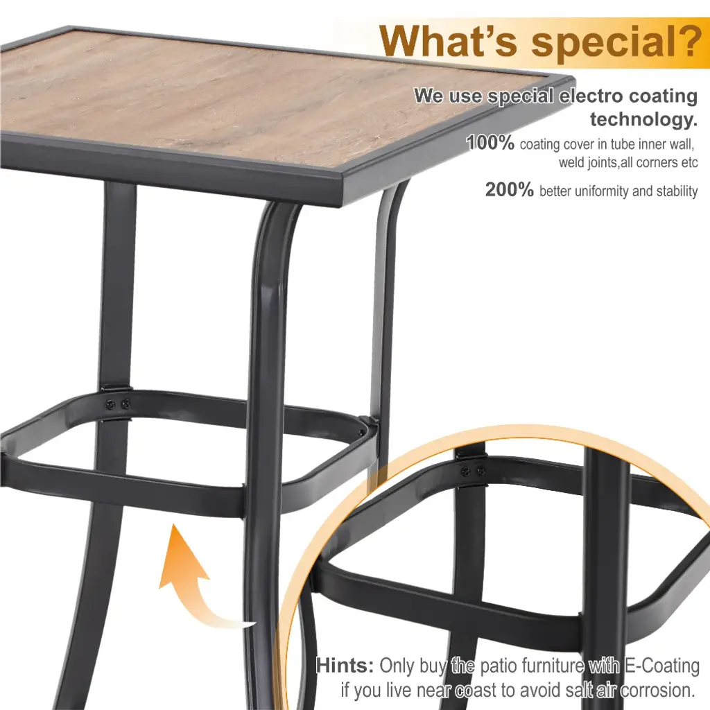 Phi Villa High Bar Table With Wood-Like Pvc Tabletop