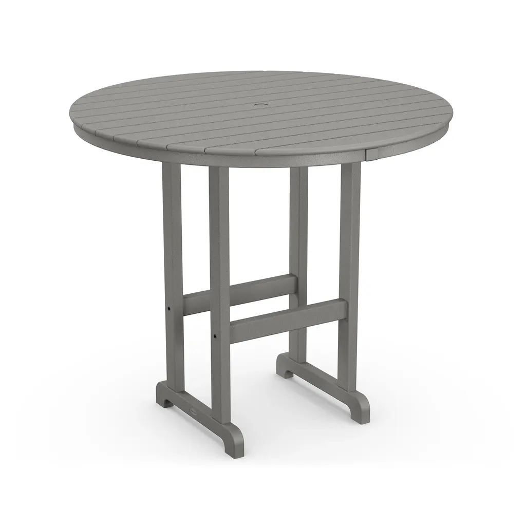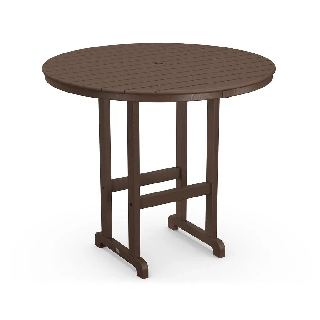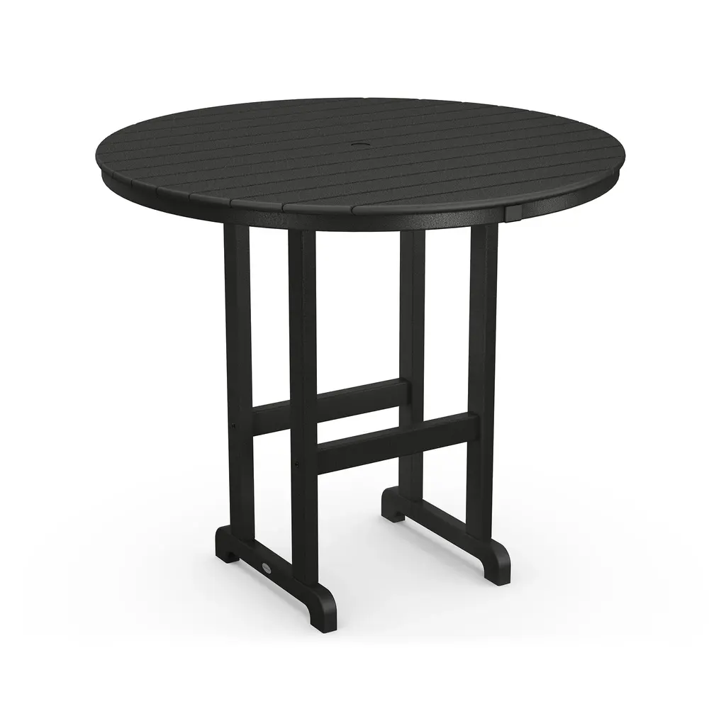 Our POLYWOOD® 48 inch (4' diameter) Outdoor Round Bar Height Table rises to the top in durability and stands strong through the toughest outdoor, beach, patio and marine environments. Made from genuine POLYWOOD® lumber, this table is ultra-durable, weather-resistant and free of the maintenance hassles that accompany traditional outdoor furniture. No need to store this POLYWOOD® table during winter months - leave it outside!