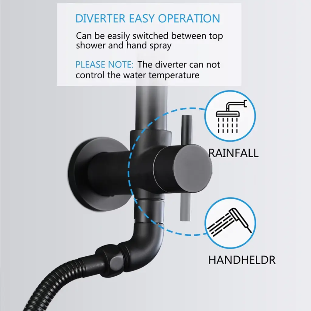 To provide a modern shower system and add beauty for your bathroom decoration, our PROOX rain shower set has a simple industrial design. Hence, our set does not include the valve to control the temperate. The slider can be easily moved up and down to change the height of your handheld showerhead. For your shower, the size of the shower is suitable for the whole family.