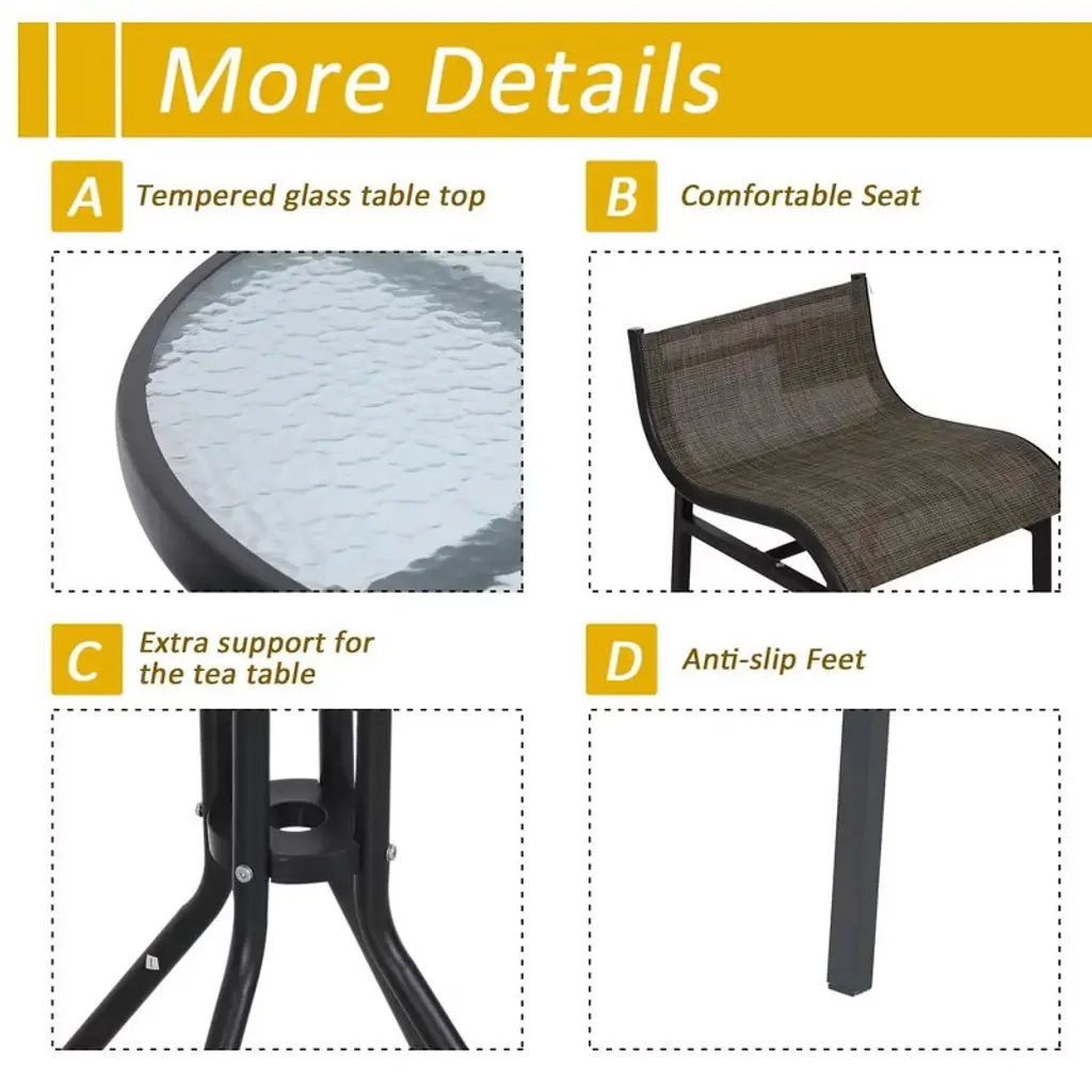 The 3 Piece Bar Height Outdoor Bistro Set for 2 is designed to bring you an elegant yet budget-friendly outdoor experience. This modern bistro set enhances your backyard, garden, or poolside, providing the perfect place to gather and unwind. Resenkos 3 Piece Bar Height Outdoor Bistro Set for 2, Round Patio Pub Table 2 Bar Chairs with Comfortable Design & Strong Build, Tan