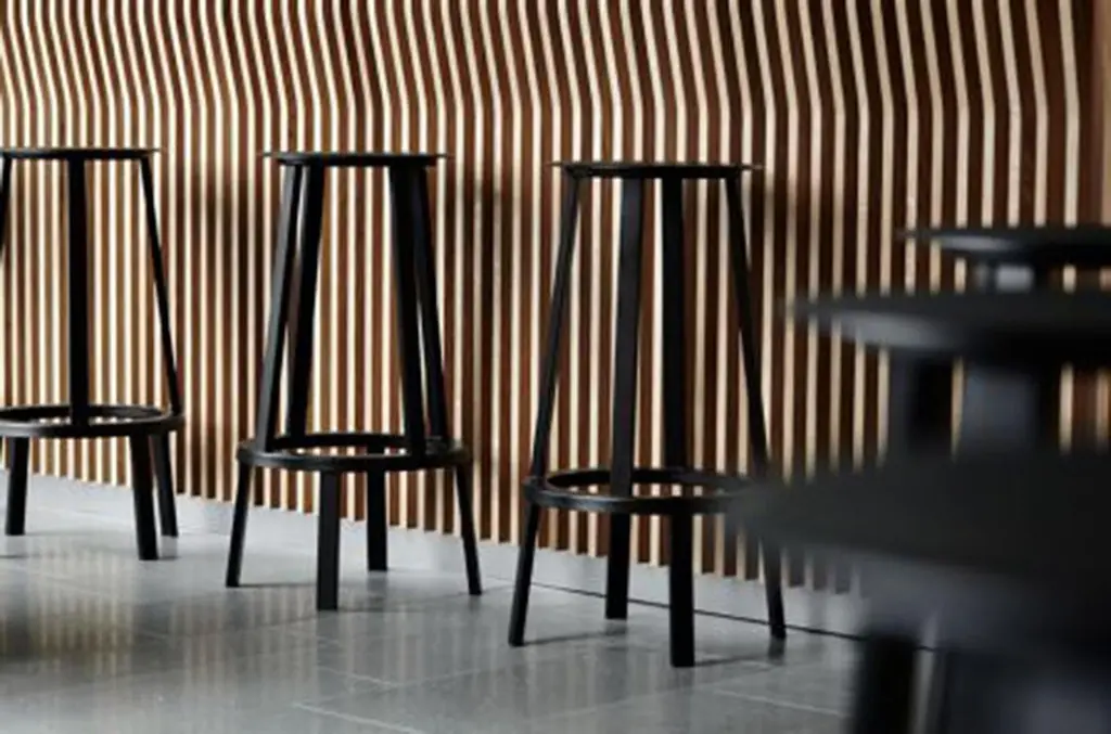 The Revolver bar stool is positioned on a bearing mechanism that enables the seat and footing to rotate 360 degrees. The slim, slightly dished seat features curved edges for additional comfort, while the footrest provides support and the weighty base creates total stability. The rotating feature, while altering appearance, also lends a sense of the play to this functional design.Highlights: - Seat and foot ring rotates 360 degrees.- Dimensions : Height 76 cm 29.92” / diameter base 44,5 cm 17.52” / diameter seat 34 cm 13.39”- Materials : Powder coated steel with aluminium bearing- Requires assembly.DesignerLeon Ransmeier is an American industrial designer who founded the design practise Ransmeier Inc., in New York in 2010. A graduate of the Rhode Island School of Design, his work has been included in the permanent collection of the San Fransisco Museum of Modern Art (SFMOMA) and the Corning Museum of Glass. Very much a hands-on designer, Ransmeier develops full size prototypes of all of his works and is a believer in the idea that “use follows form”. For HAY, Ransmeier has designed the Revolver Collection and Shortwave Dish Rack.