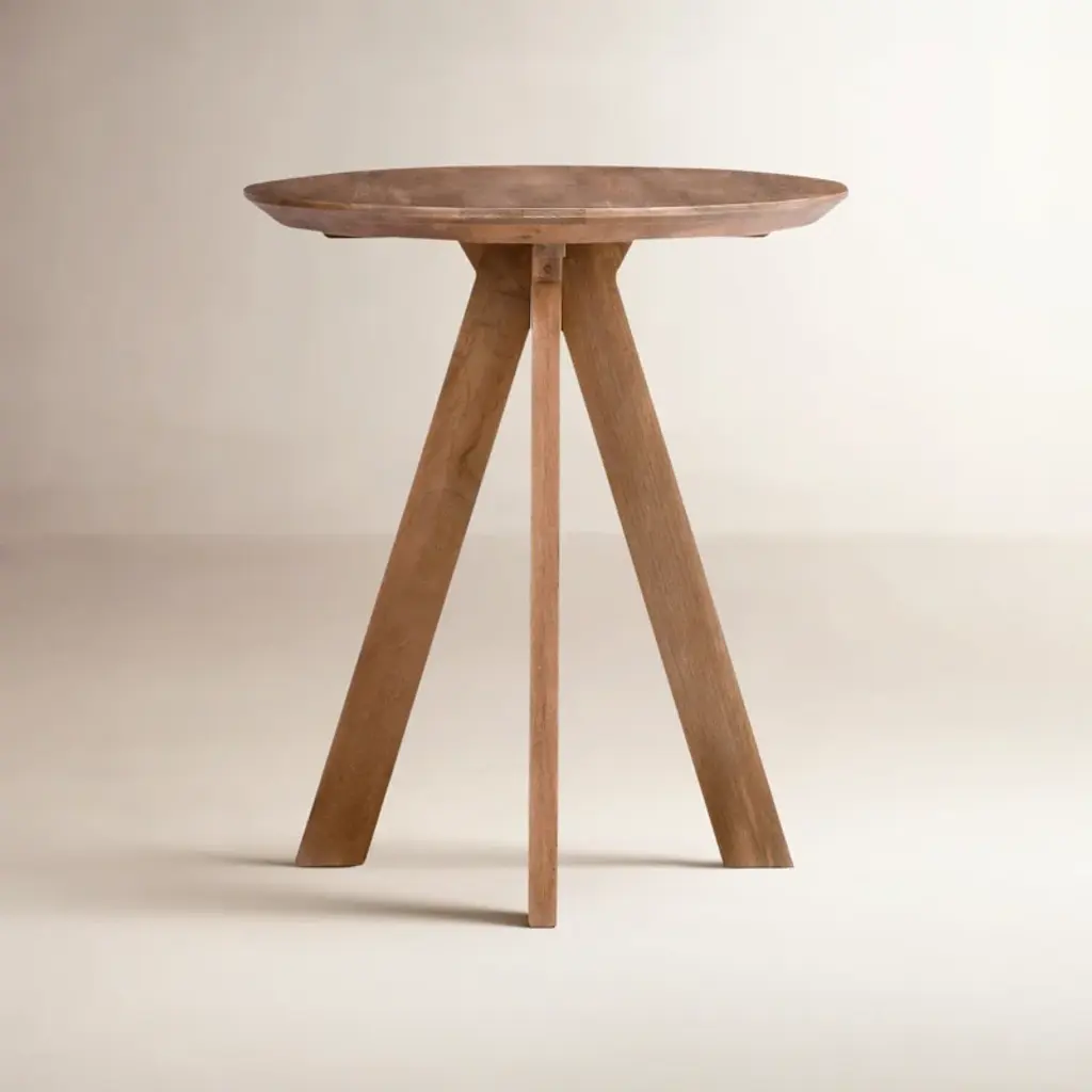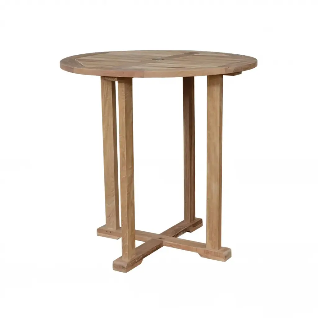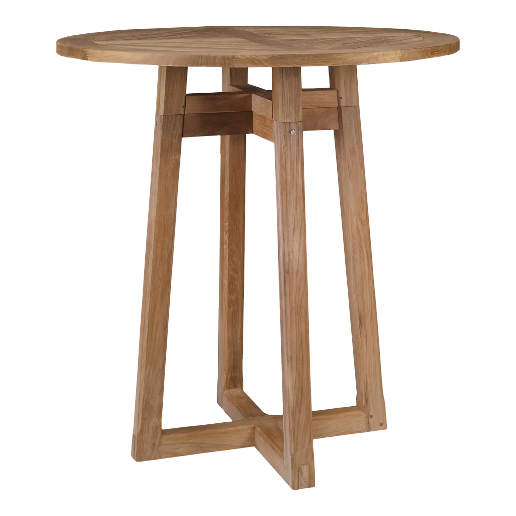 The three-legged Berri Bar Table is completely made of solid reclaimed teak wood. Its timeless design, together with the natural texture of the old wood with its typical visible grain structure give the piece a rustic, yet elegant look that never goes out of style.
