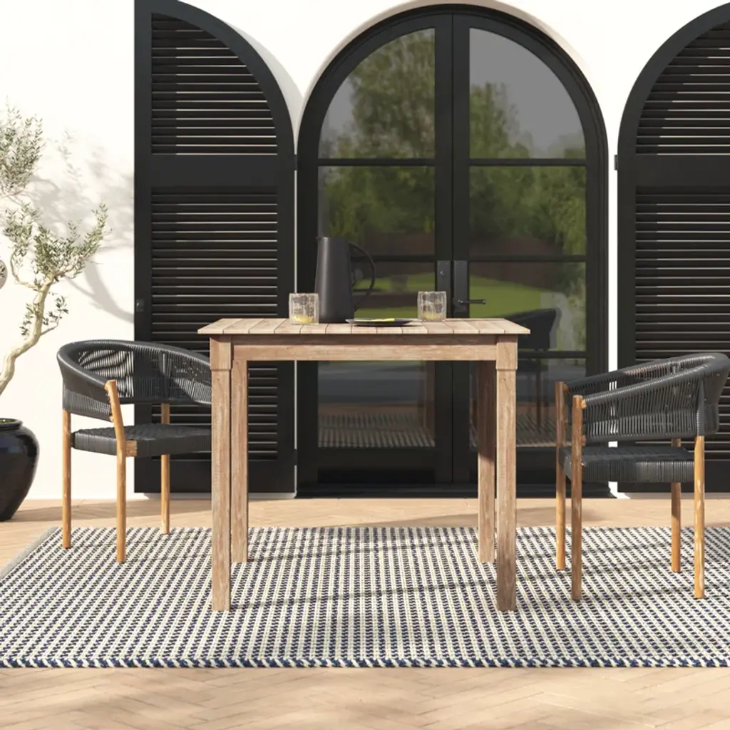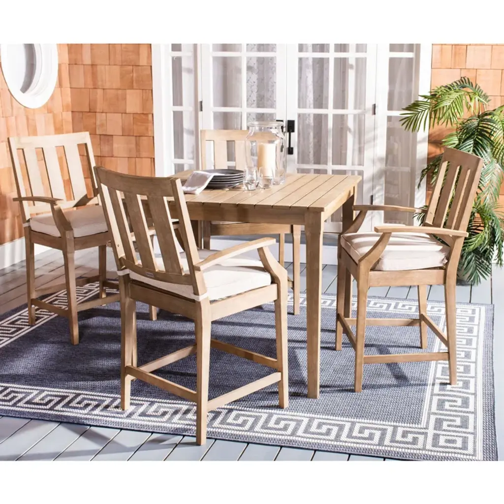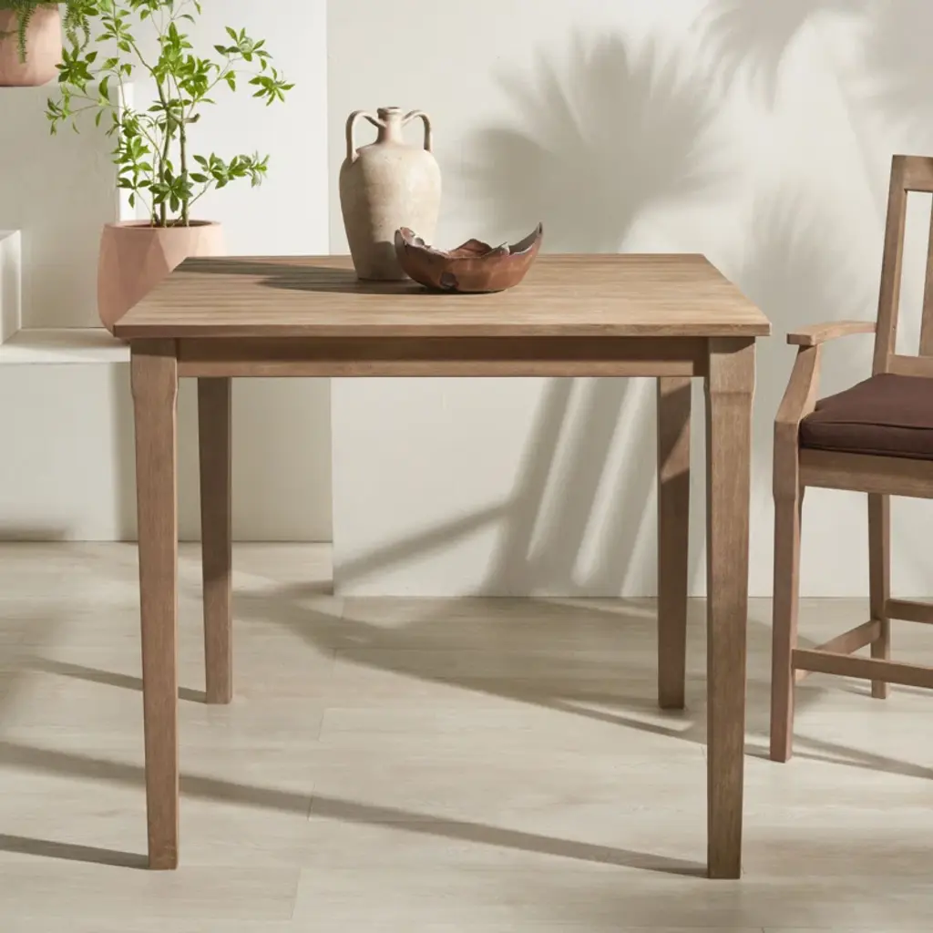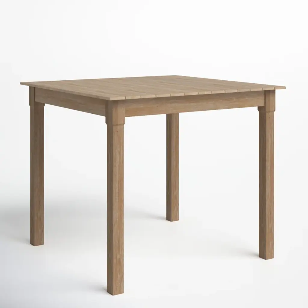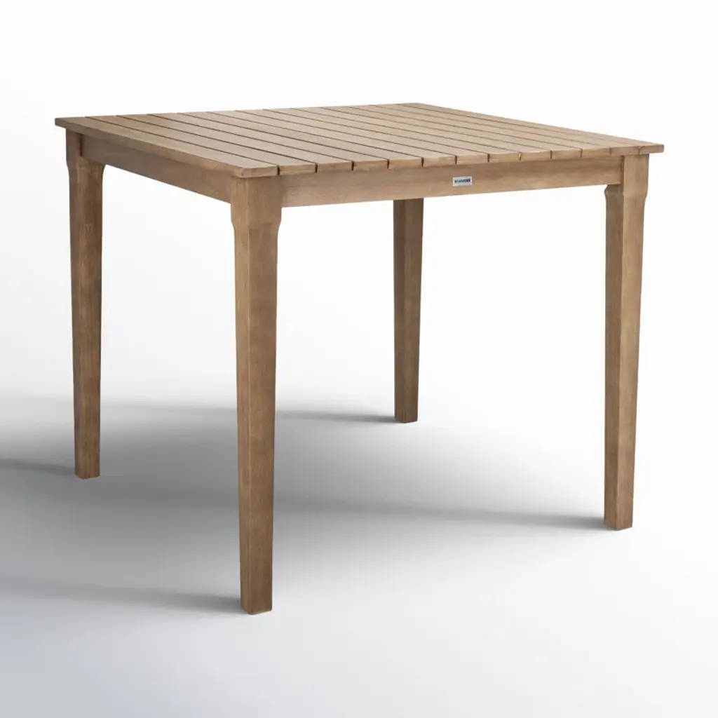 Raise the bar on outdoor entertaining with this solid wood bar table. It comfortably seats four, making it the ideal spot for spontaneous neighborhood gatherings or a casual brunch. With a square top and weather-resistant finish, this piece is designed to withstand the elements while still looking fresh. Natural wood grain variations give each table a unique feel. Just add stools and let the good times roll. Plus, it's easy to clean, so you can spend more time enjoying, less time worrying.
