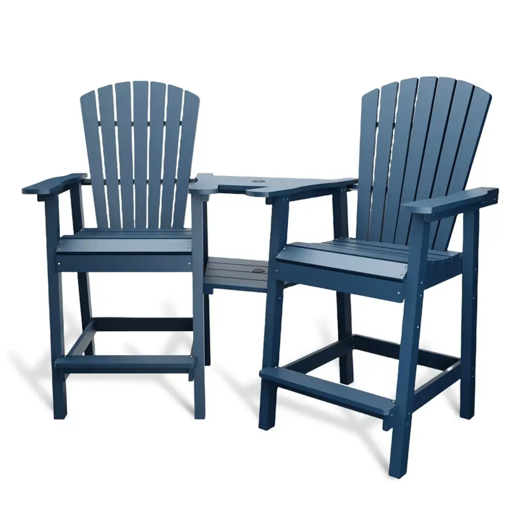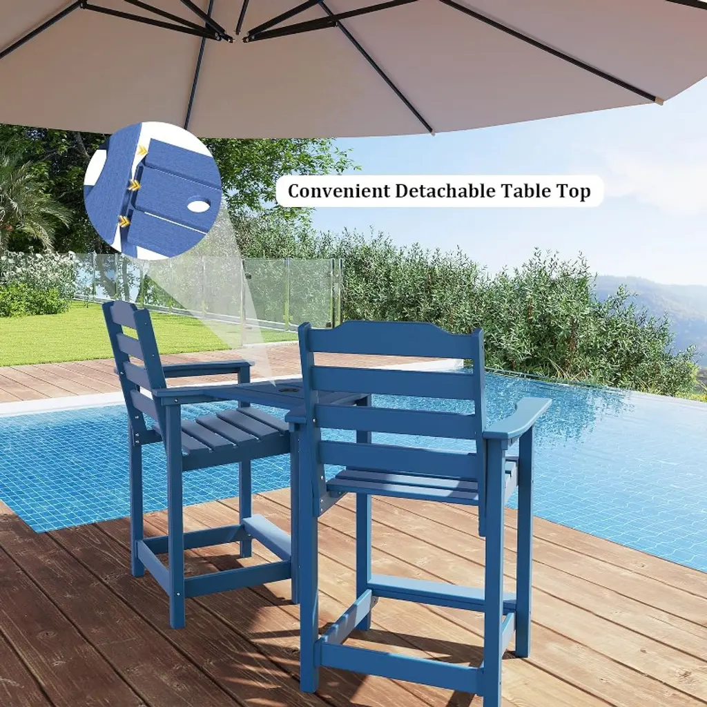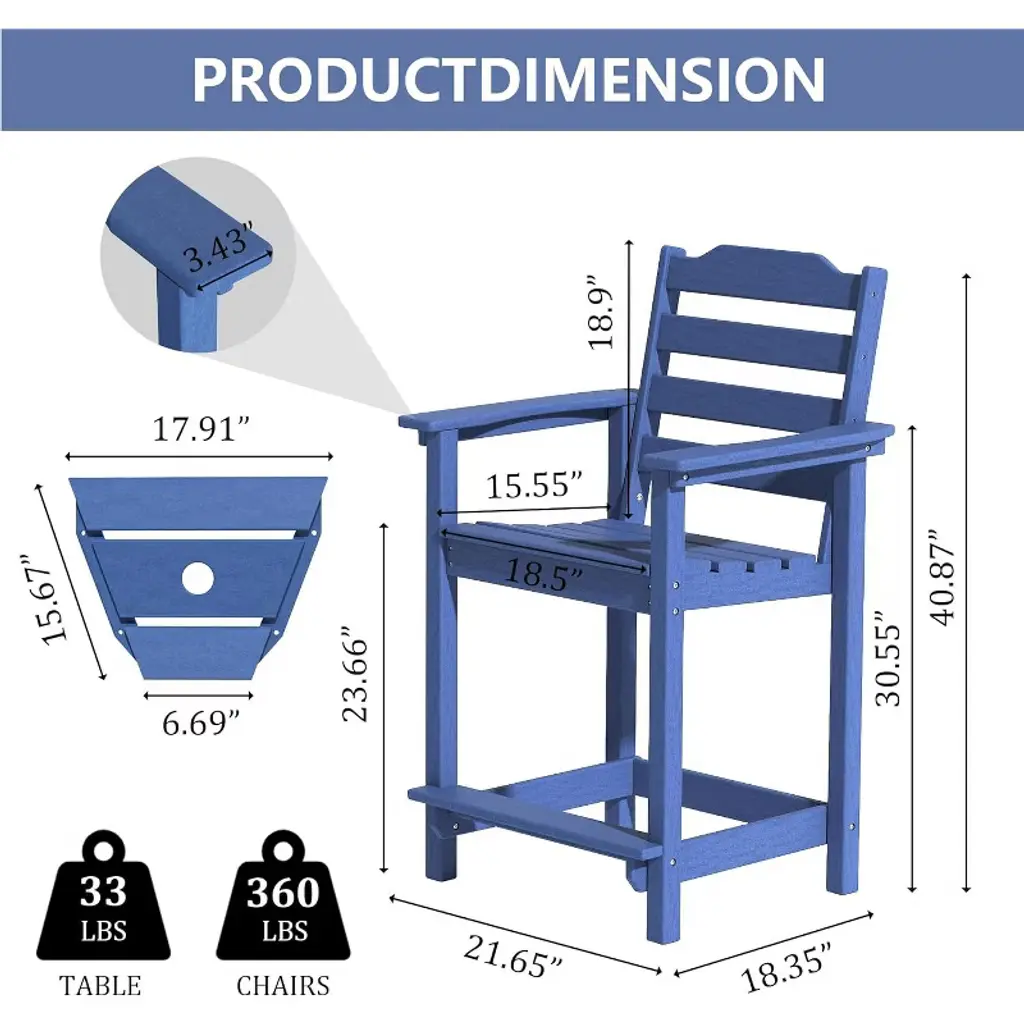 Senpuki Black High Bar Stool Set W/drink Table - Eco Outdoor Chairs For Patio, Poolside & Beach (Blue)