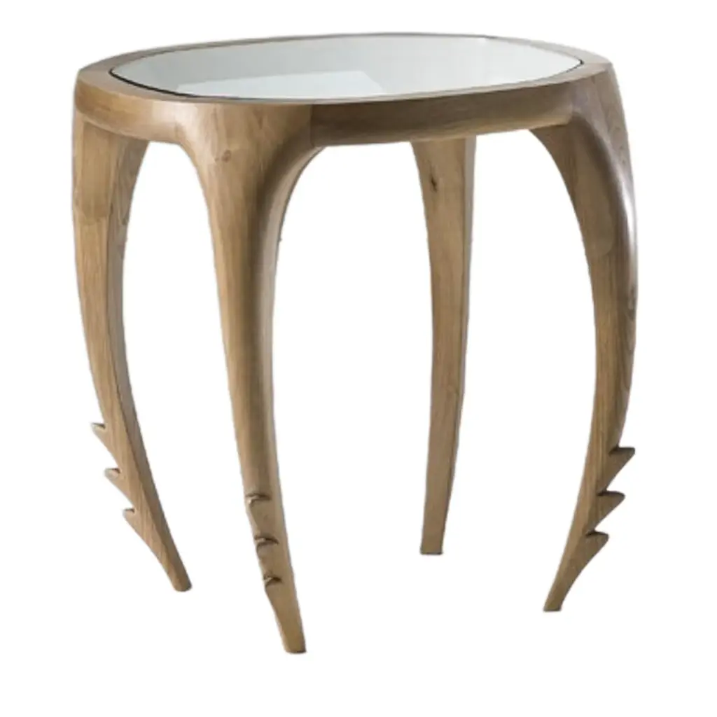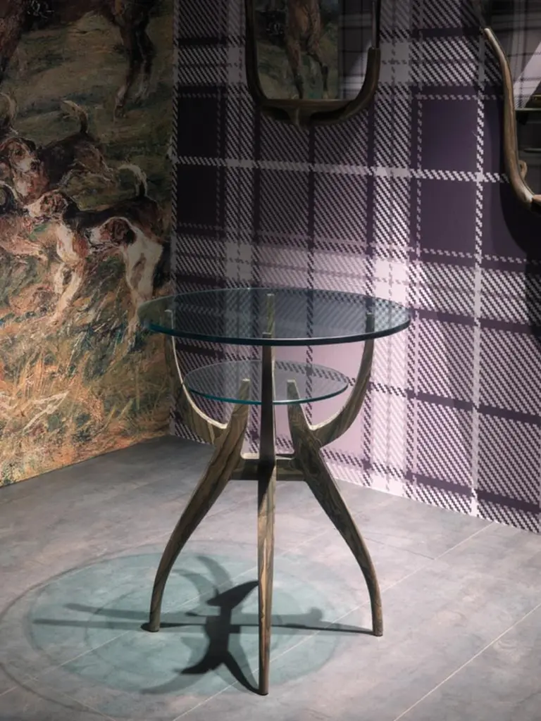 Behold the Stag/G table, a captivating creation designed by the visionary Nigel Coates that breathes life into your living space. Inspired by the animal kingdom, the table's legs gracefully mimic the majestic horns of a stag, adding a touch of wild elegance to your surroundings.Designed to enchant, the Stag/G table boasts a 20mm clear glass top with smoothed edges, offering a glimpse into the intricate carving work that defines its solid walnut wood structure. Every detail tells a tale of craftsmanship, from the subtle nuances of the carving to the seamless fusion of form and function.This item has been individually handmade by our master craftsmen. Any irregularities or natural blemishes should not be misconstrued as flaws but as integral elements that make each handmade piece unique.