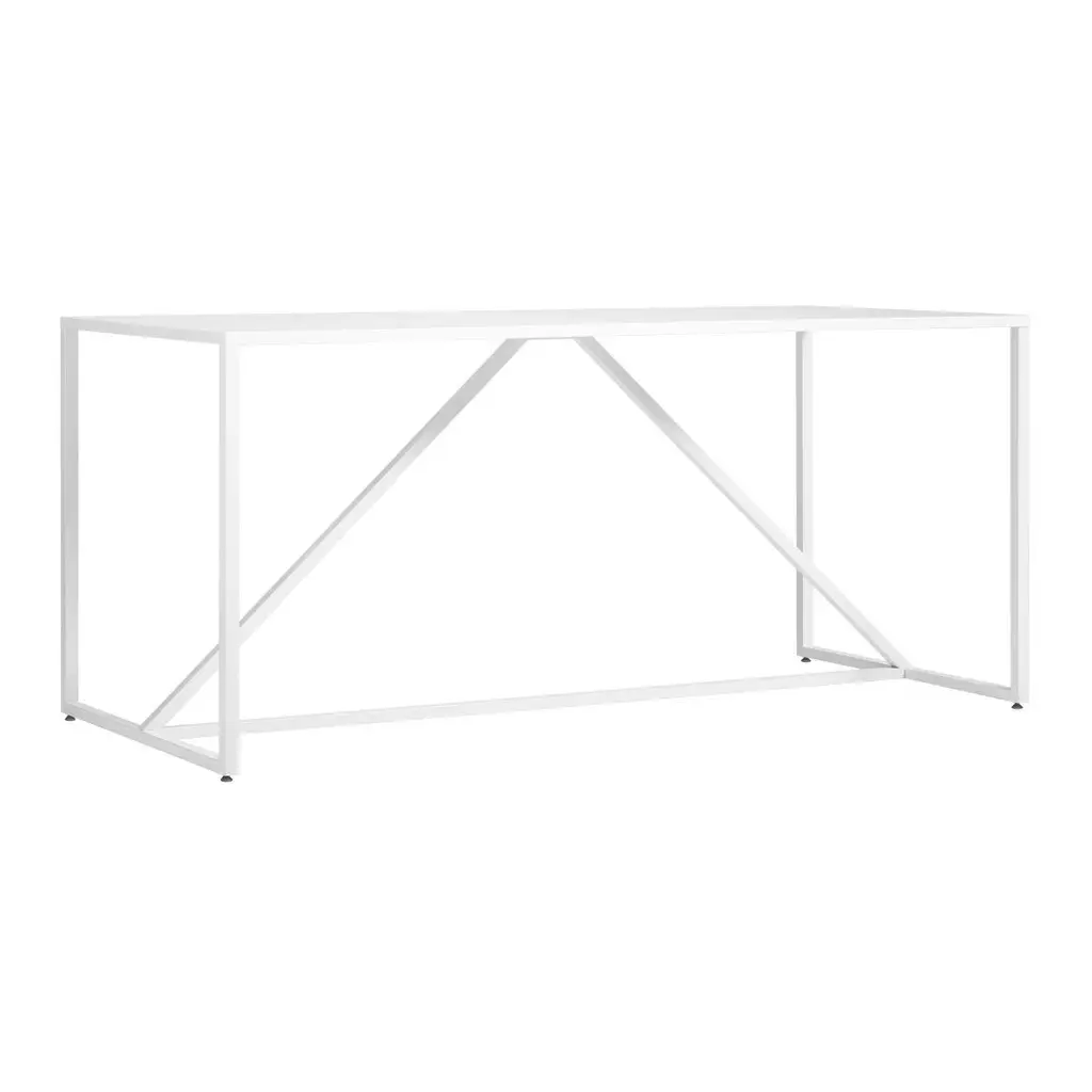Structure and design are one with the Strut. A proud stance for any gathering. Conferencing for eight dining for six or a power desk for one. Now in a bar height version to help you level up. Stand your ground while you work or pair with stools. Powder-coated steel frame with a polyurethane MDF top.
