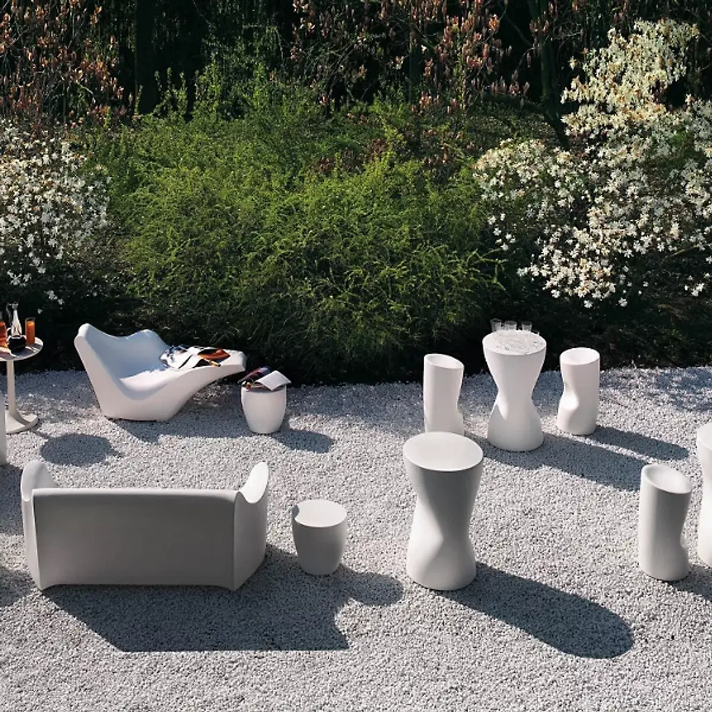 Enjoy drinks for 2 along with the sleek style of the Driade Tokyo Pop Bar Table. Shaped much like a chess piece, this petite, sculptural table is molded out of a single piece of polyethylene plastic. Add a couple of Tokyo Pop Bar Stools, and you're ready to go. (If choosing other seating, please note that this table is a few inches shorter than standard bar height.)