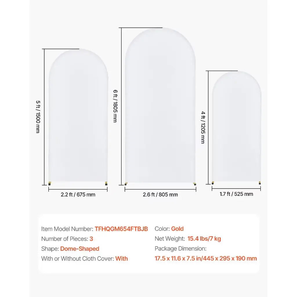 Feature: Elegant Design: This wedding arch backdrop stand includes 3 gold arch frames in sizes 6 x 2.6 ft, 5 x 2.2 and 4 x 1.7 ft, creating a romantic and elegant atmosphere for weddings while serving as a popular backdrop for guest photos. Easy Installation: Enjoy our easy-to-install process. Each part of this wedding arch backdrop stand is labeled with corresponding numbers that match the instruction manual, making assembly simple and stress-free. High-Quality Material: Made from durable metal with upgraded 18 x 18 mm profiles, this wedding arch backdrop stand ensures stability and long-term use, suitable for both indoor and outdoor environments. Enhanced Stability: The wedding arch backdrop stand’s base features a cross-bar design that reinforces the structure, providing solid support to keep the arch secure during wedding events. Say goodbye to shake stand! Versatile Use: With the addition of decorative elements, this wedding arch backdrop stand can enhance the visual appeal of various occasions beyond weddings, such as parties, celebrations, and grand openings. Package Content: 1 x Wedding Arch Backdrop Stand 1 x User Manual 6 x 25 mm Screws M6 1 x M6 Wrench 33 x 10 mm Screws M6 12 x Windbreak Piles