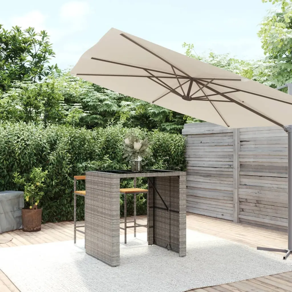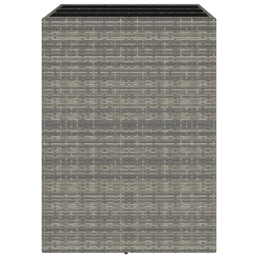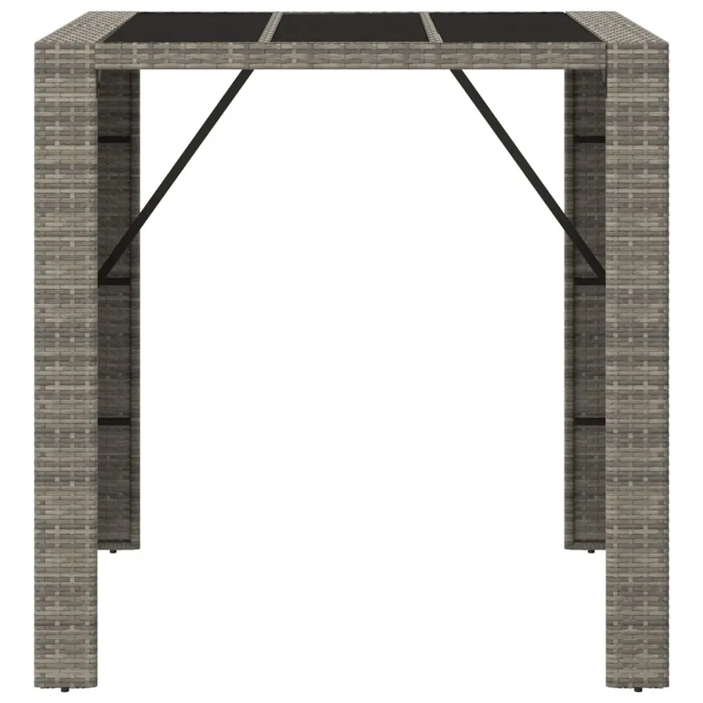 This modern bar table with a glass top is a great addition to balconies and patios, made for entertaining guests in style and ease. Its sleek grey frame and striking tempered glass surface blend perfectly, making it a fab pick for gatherings or intimate dinners. Stylish Appeal: The sleek design of this bar table not only looks great but also fits in with various decor styles, making it a fantastic centerpiece for outdoor gatherings.Durable Craftsmanship: Made from weather-resistant poly rattan and solid powder-coated steel, this table is built to last through the elements.Easy Maintenance: The tempered glass surface makes cleaning a breeze, letting you enjoy your outdoor time without worrying about upkeep.Generous Size: At 43.3 in tall and 41.3 in long, this table comfortably seats four people, perfect for social occasions like barbecues or brunches.Versatile Use: Whether for casual parties or professional meetings, this bar table suits loads of occasions with style and purpose.