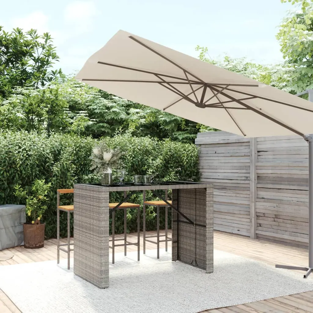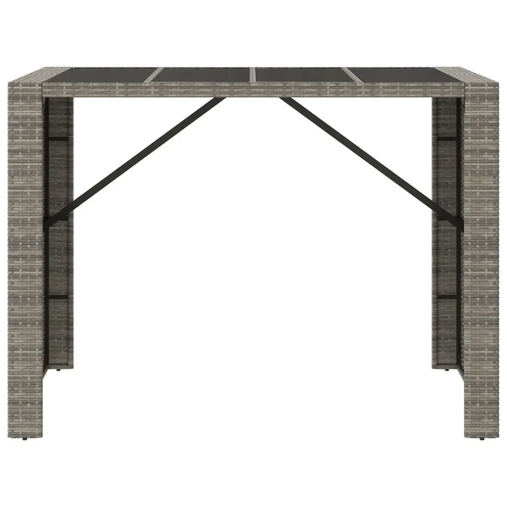 This modern bar table is all about style and practicality, making it a fab addition to your outdoor spot. Made from a mix of tough poly rattan and tempered glass, it brings a sleek look that really brightens up any patio, balcony, or garden area whilst providing a sturdy place for you and your friends to gather. Stylish Design: The sleek lines and contemporary look of the bar table go well with any outdoor decor, making it a warm and inviting space for gatherings.Weather-Resistant Materials: Made from tough poly rattan and tempered glass, this table holds up well against the elements without losing its charm.Spacious Surface: With dimensions of 57.1 x 31.5 in, it offers loads of space for drinks, snacks, and decor, making it perfect for entertaining guests.Stable Frame: The powder-coated steel frame makes sure this table stays steady, providing a solid platform for everyone to enjoy.Easy Maintenance: Keeping it clean is a doddle thanks to its weather-resistant materials, so you can spend more time having fun and less worrying about upkeep.