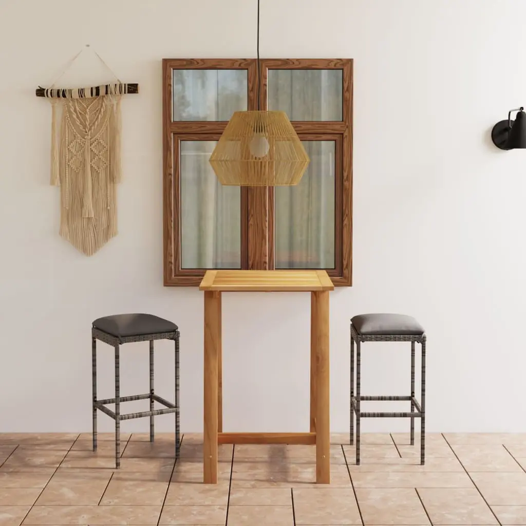 This 3-piece garden bar set comes with a modern square table and two stylish stools, perfect for having friends over or enjoying the great outdoors. Made from a mix of solid acacia wood and sturdy powder-coated steel, it's all about style and function, making it ideal for a cozy outdoor dining experience or a chill spot in your garden, patio, or terrace. This built-to-last set can stand up to the test of time while keeping its stylish look.With an elegant design, this garden bar set adds a touch of class to any space, indoors or outdoors.The weather-resistant cushions offer a comfy seating experience, perfect for long periods of enjoyment.It’s easy to maintain, as the cushions have removable covers for quick cleaning.The combination of solid acacia wood and synthetic materials ensures a sturdy yet stylish addition to your home.