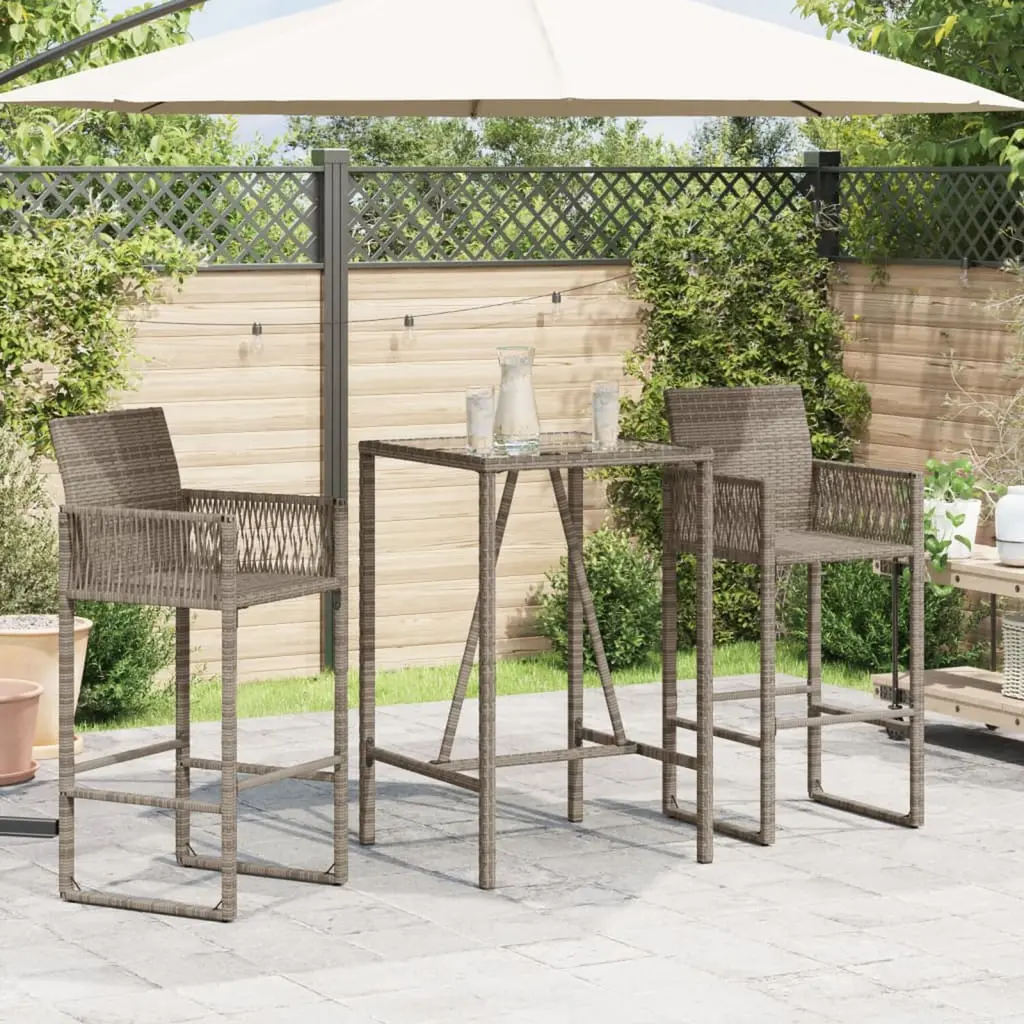 This Modern Grey Outdoor Bar Table is ideal for any outdoor bash or a cozy balcony vibe. With its slick lines and elegant woven finish, it fits right into chic gardens and patios, giving you a fab spot for drinks, snacks, or just chilling with friends. Its design not only matches outdoor styles but also boosts your outdoor setup, comfortably seating up to four. Whether you’re firing up the barbecue or enjoying a quiet night with someone special, this table blends durability with style. Sturdy Structure: Made from durable poly rattan and powder-coated steel, this table stands up to outdoor weather for lasting use. Spacious Surface: The tempered glass top provides plenty of space for meals and drinks while being easy to clean. Year-round Versatility: Ideal for al fresco meals in summer or a stylish touch for your garden get-togethers. Lightweight Yet Sturdy: Even though it's well-built, the table is easy to move around, giving you flexibility in how you set it up. Easy Caring: The weather-resistant materials keep it safe from sun damage and it needs hardly any maintenance.