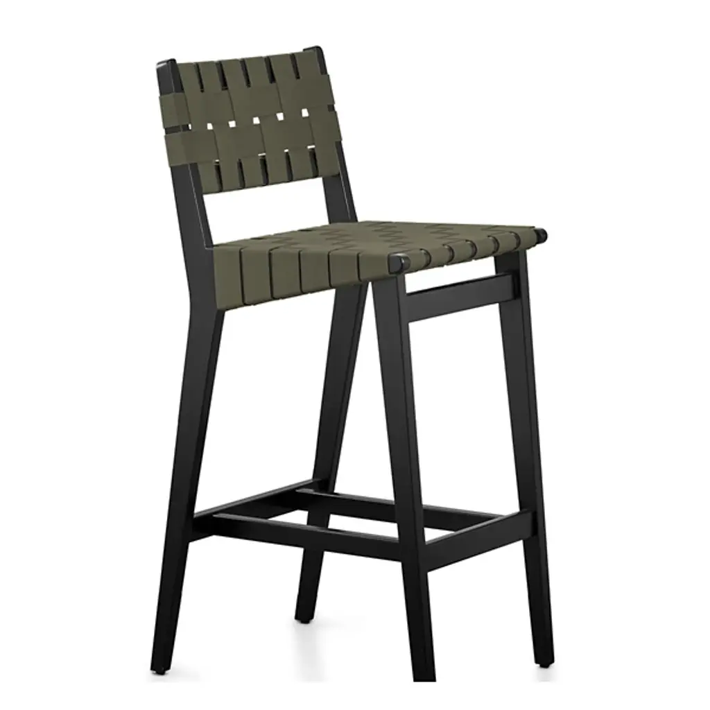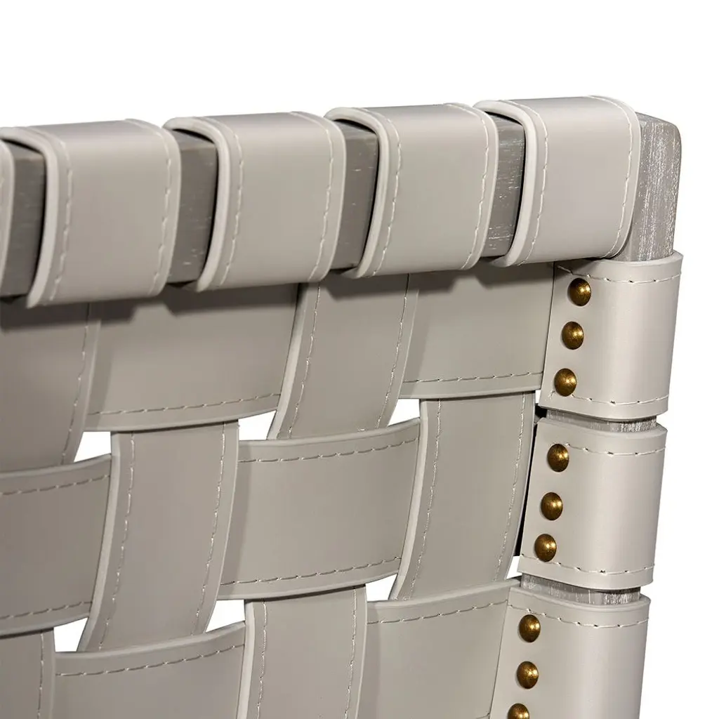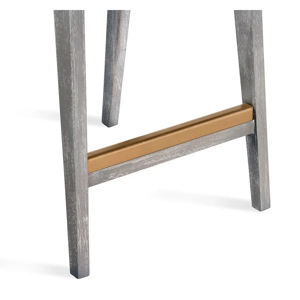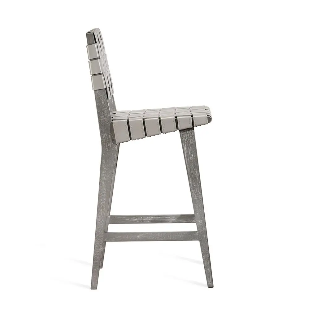 An Of-The-Moment Update To A Classic, The Louis Counter And Bar Stool Features Woven Light Grey Leather On A Grey Wash Frame With Antique Brass Nail Heads.