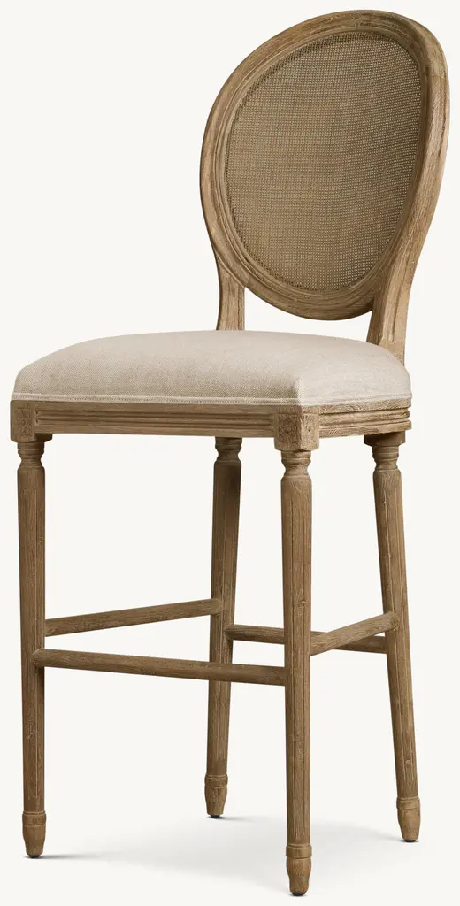 We've reproduced the classic Louis XVI dining chair with a light and airy caned back, a version of the chair popular during the French colonial period. Updated in relaxed fabrics and casual finishes, our solid oak chair features a linear form, nuanced carving and scrollwork, and tapered legs. ALSO AVAILABLE IN LEATHER SHOP THE ENTIRE COLLECTION