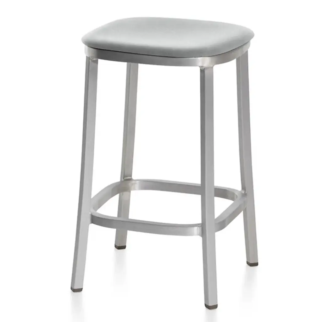 When you combine the legendary craftsmanship of Emeco and the ultra-refined aesthetic of Jasper Morrison, you get a design that is built to last both in structure and style. Morrison and Emeco combine their talents to create a piece that is strong, simple, and timeless in the Emeco 1 Inch Stool, Upholstered. The stool carries a clean silhouette that reflects Morrison’s discrete, “super normal” approach to design. The recycled aluminum construction of the base is anything but “super normal,” as it’s made using the company’s renowned 77-step handcrafted process. 1-inch square tubing is meticulously bent to shape, creating a balanced structure outlined by a neat footrest. While pleasing in looks, the stool pleases your bottom with a low-profile seat cushion, beautifully upholstered in a form-hugging indented surface.